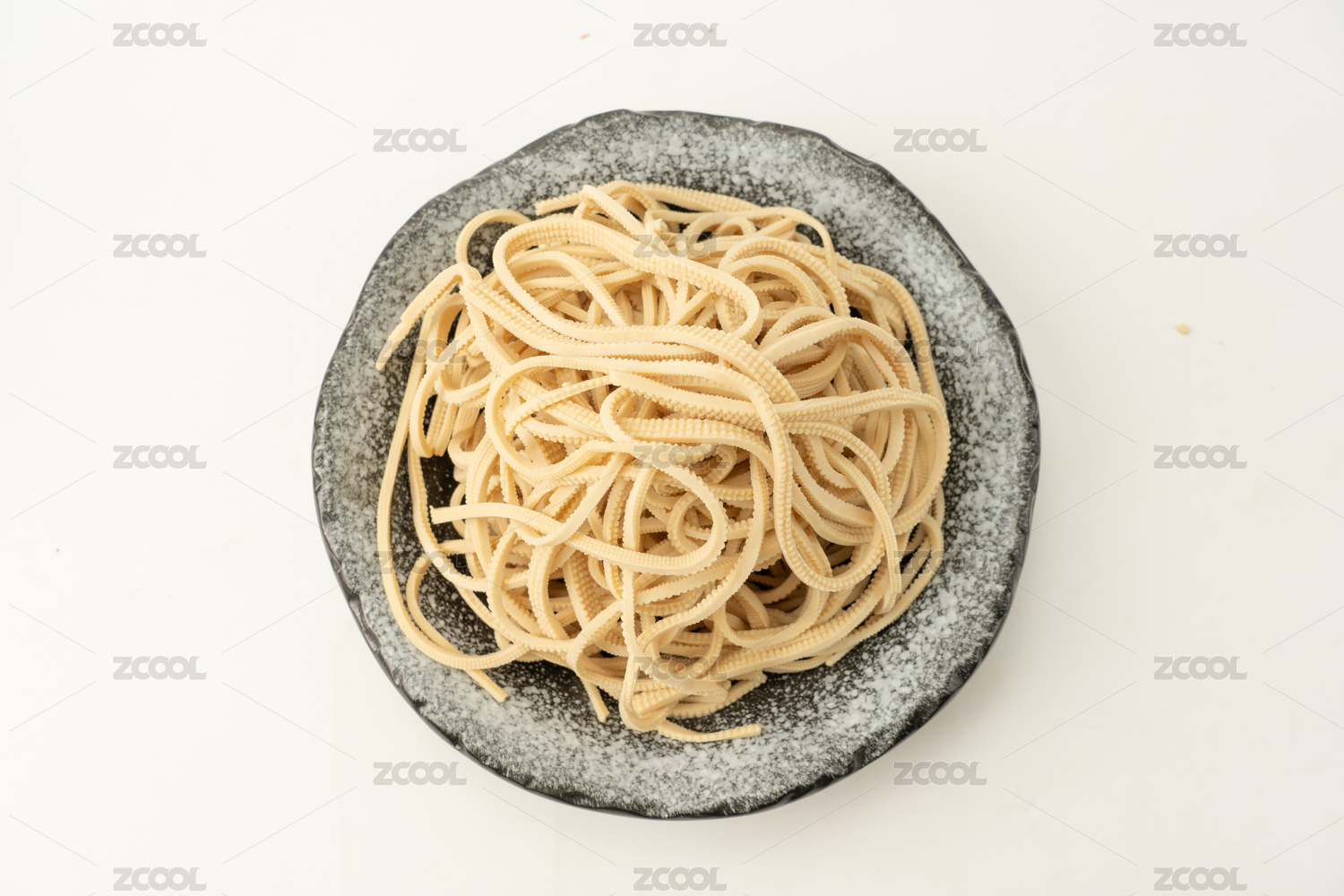 散装放在瓷盘中的白色面条