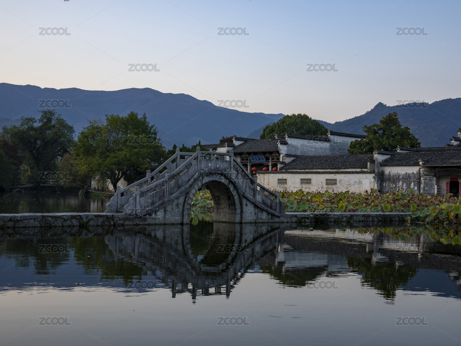 中国安徽黄山黟县宏村南湖画桥建筑风光
