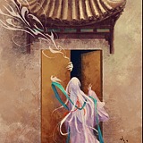 中国风古风汉服细线人物花卉插画-洛神喝茶