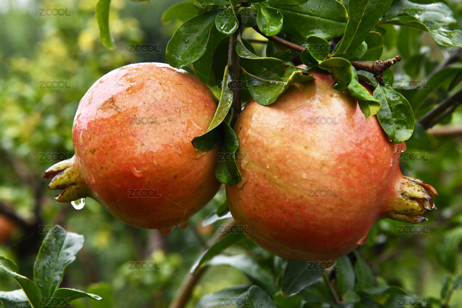 山东枣庄冠世榴园成熟的石榴果实上挂满雨