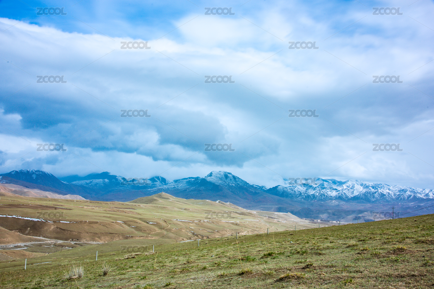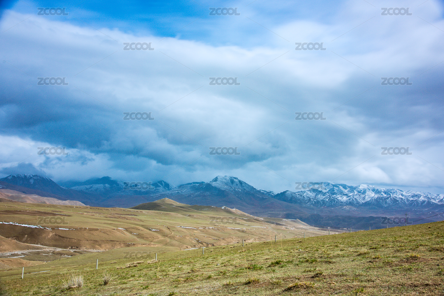 甘肃甘南藏族自治州甘加秘境-雪山下的草原