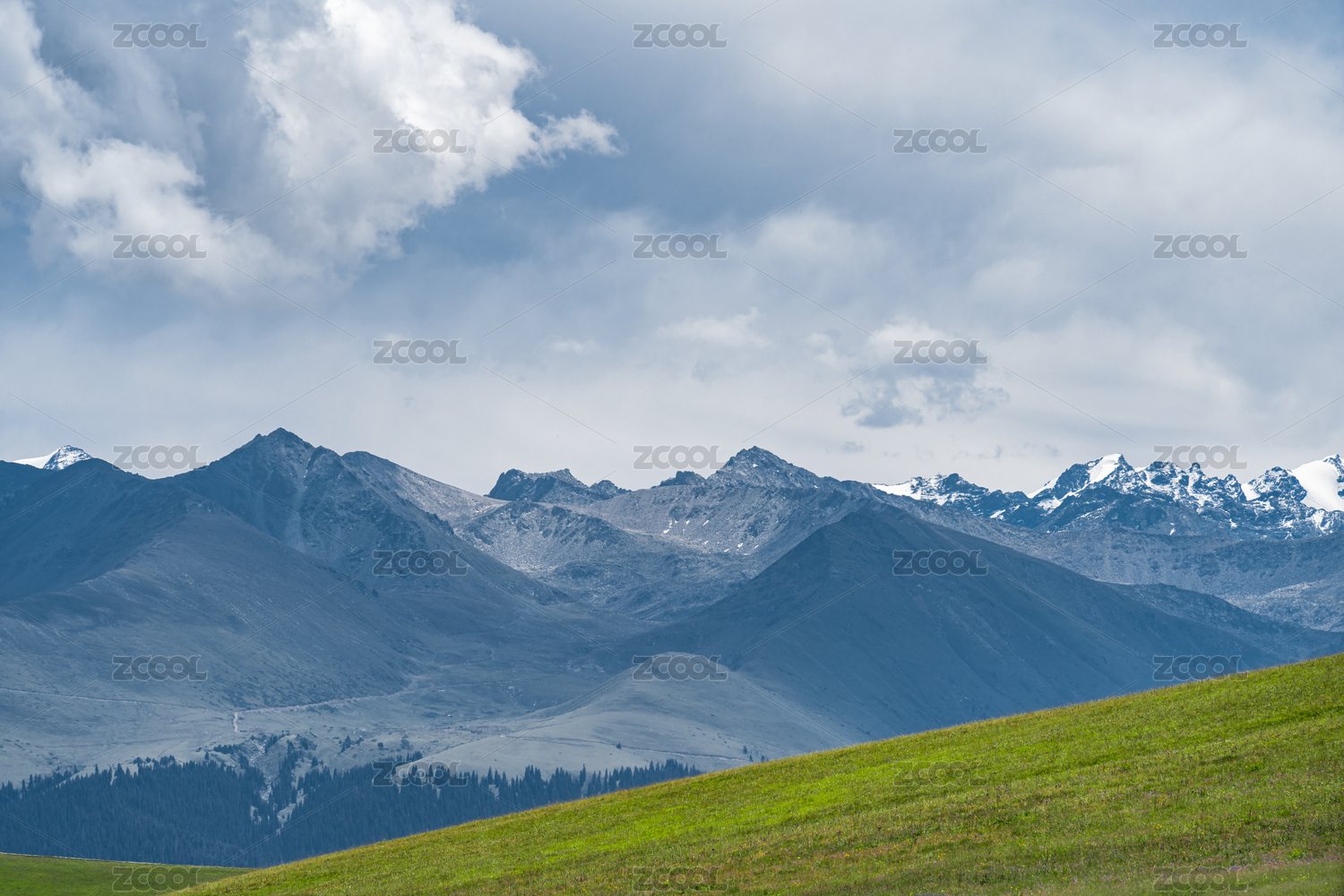 中国新疆博乐市赛里木湖畔天山山脉山麓景观