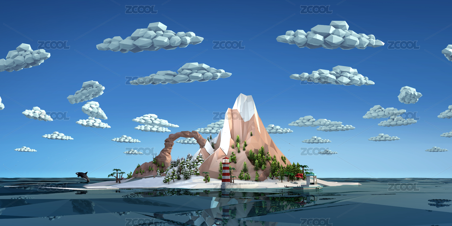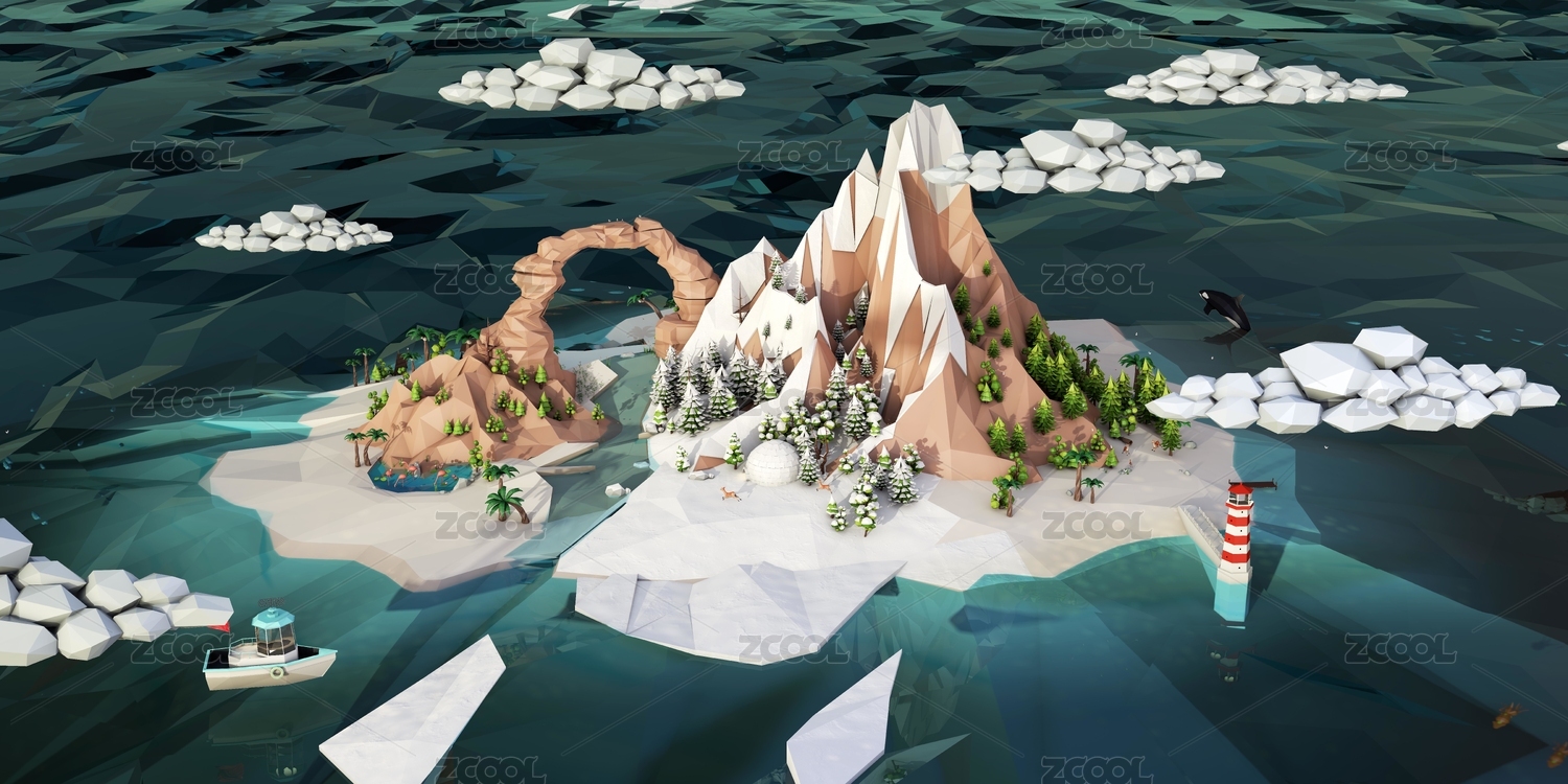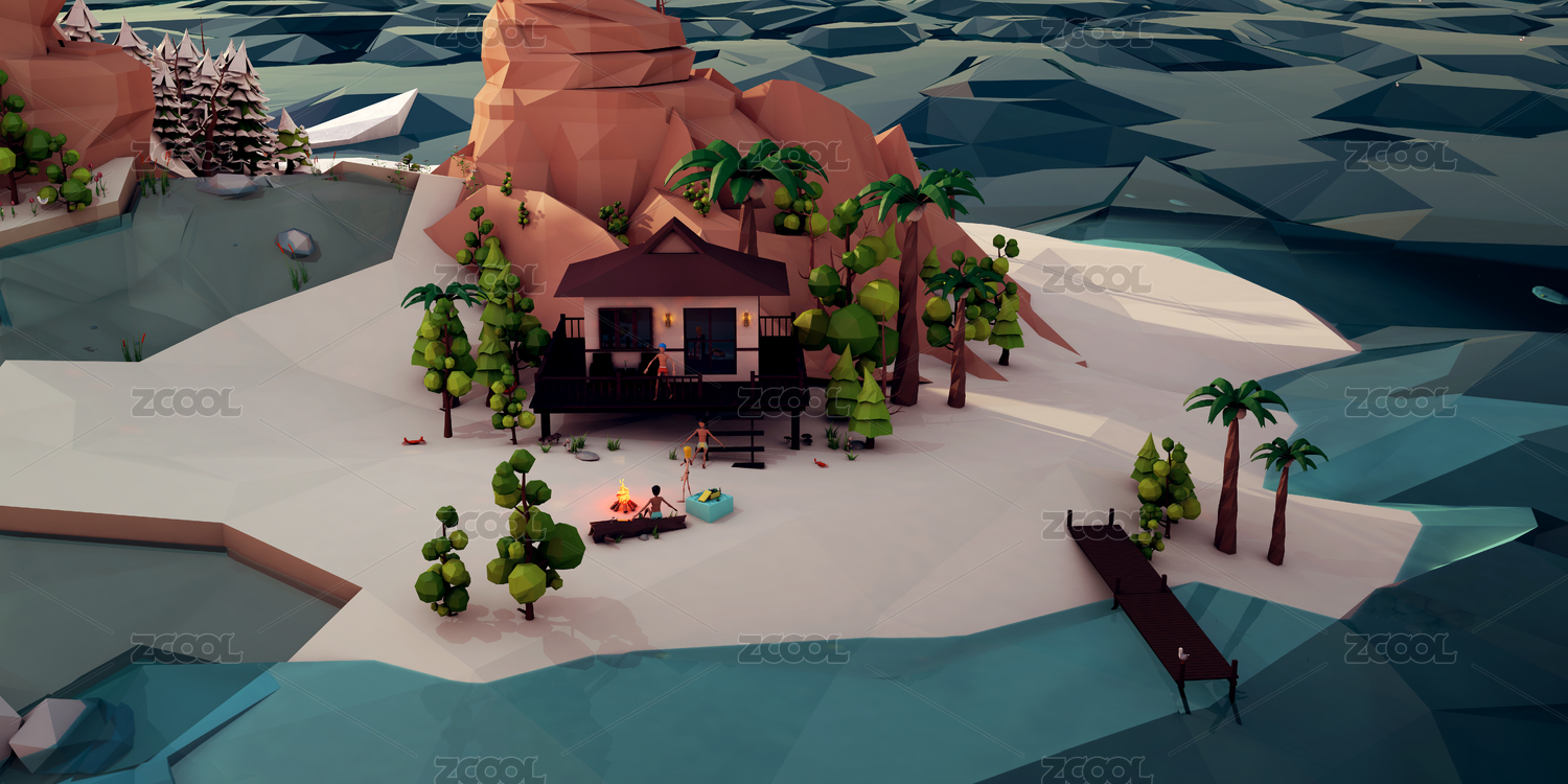 低多边形风格3D冰火度假小岛之仲夏之夜