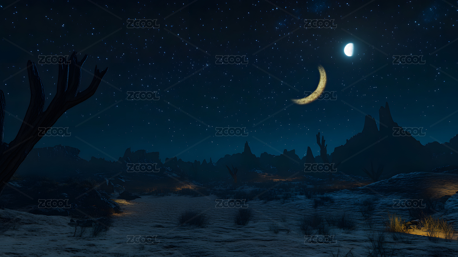 低多边形3D风格冰火度假小岛之仲夏夜之星空
