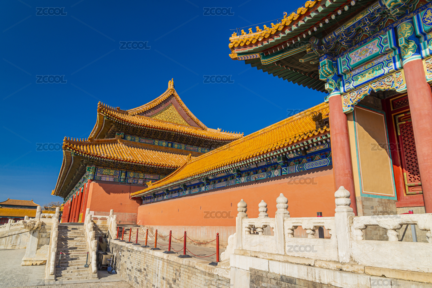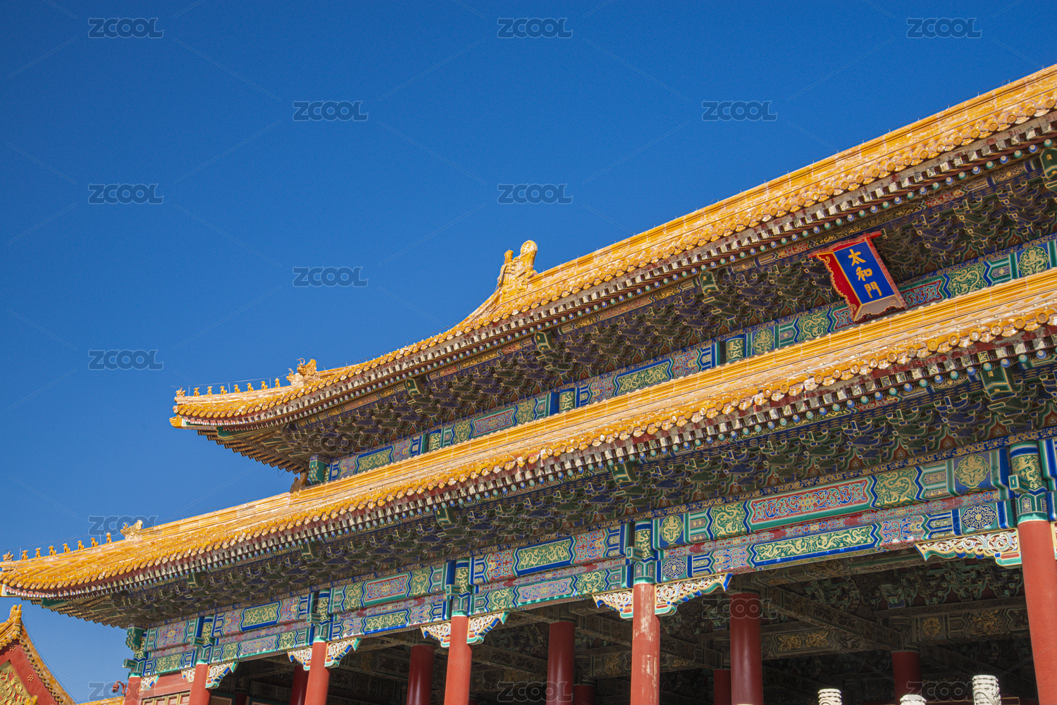蓝天下的中国北京故宫博物馆的古宫殿建筑