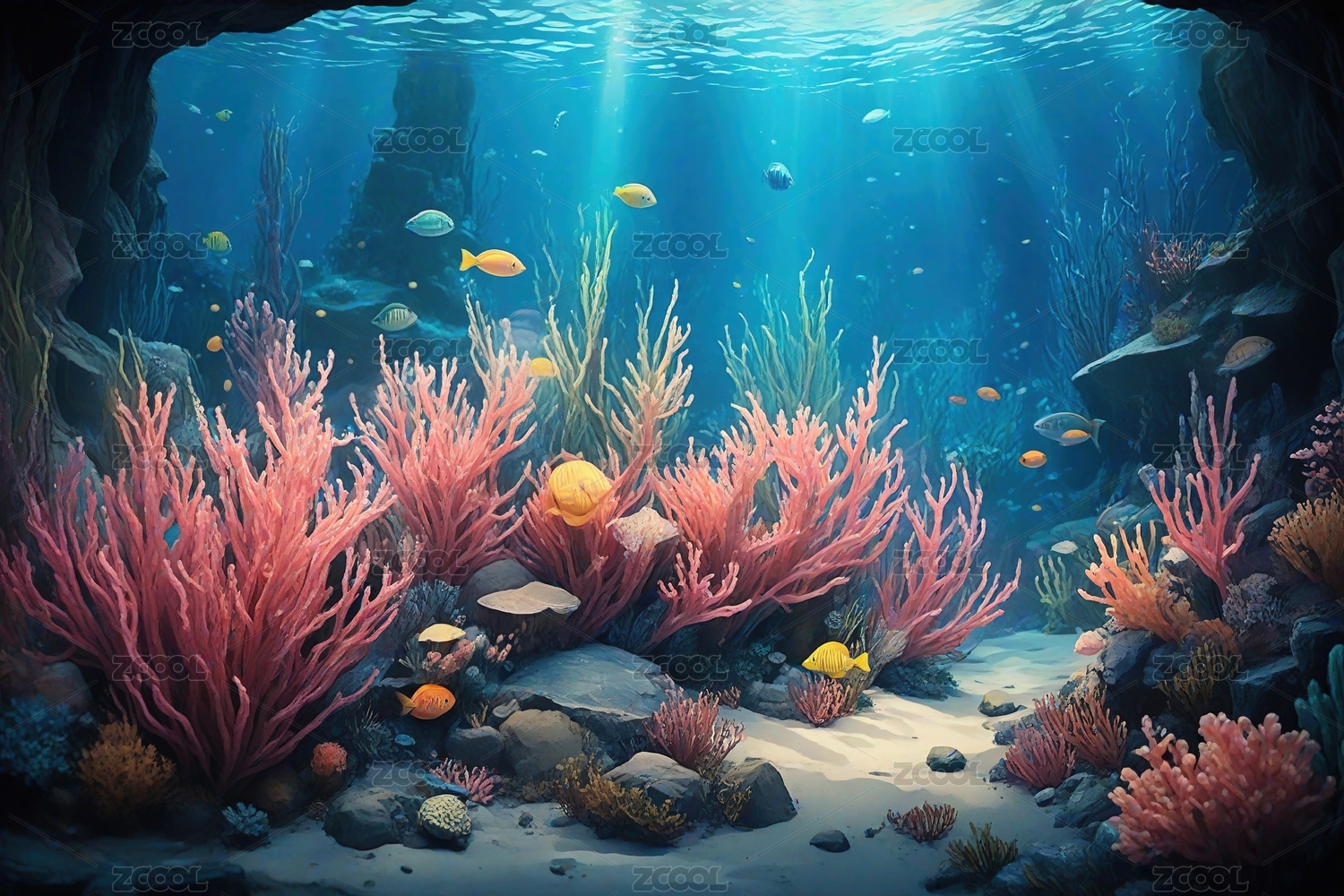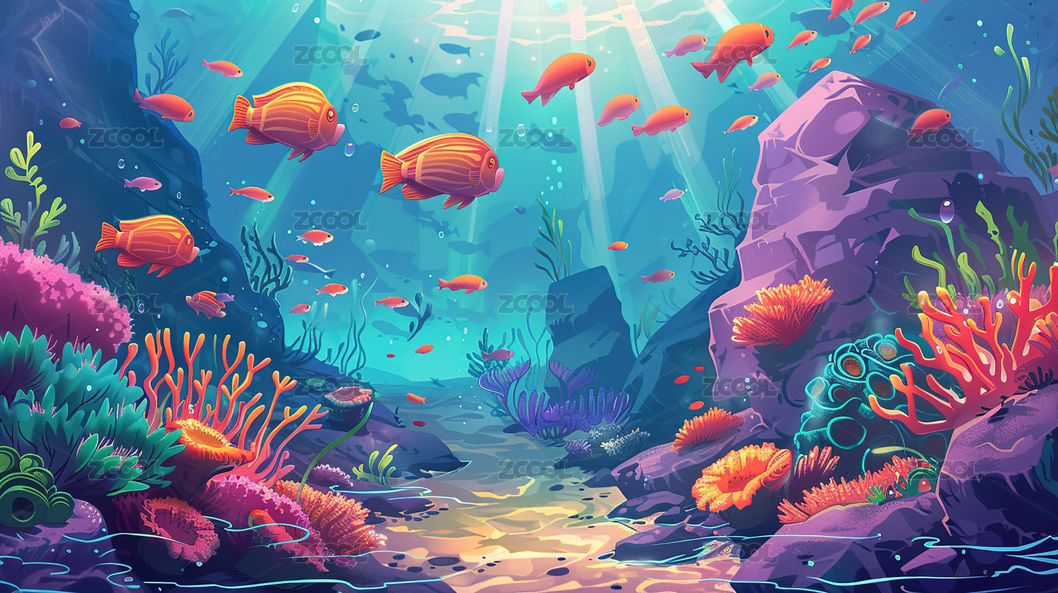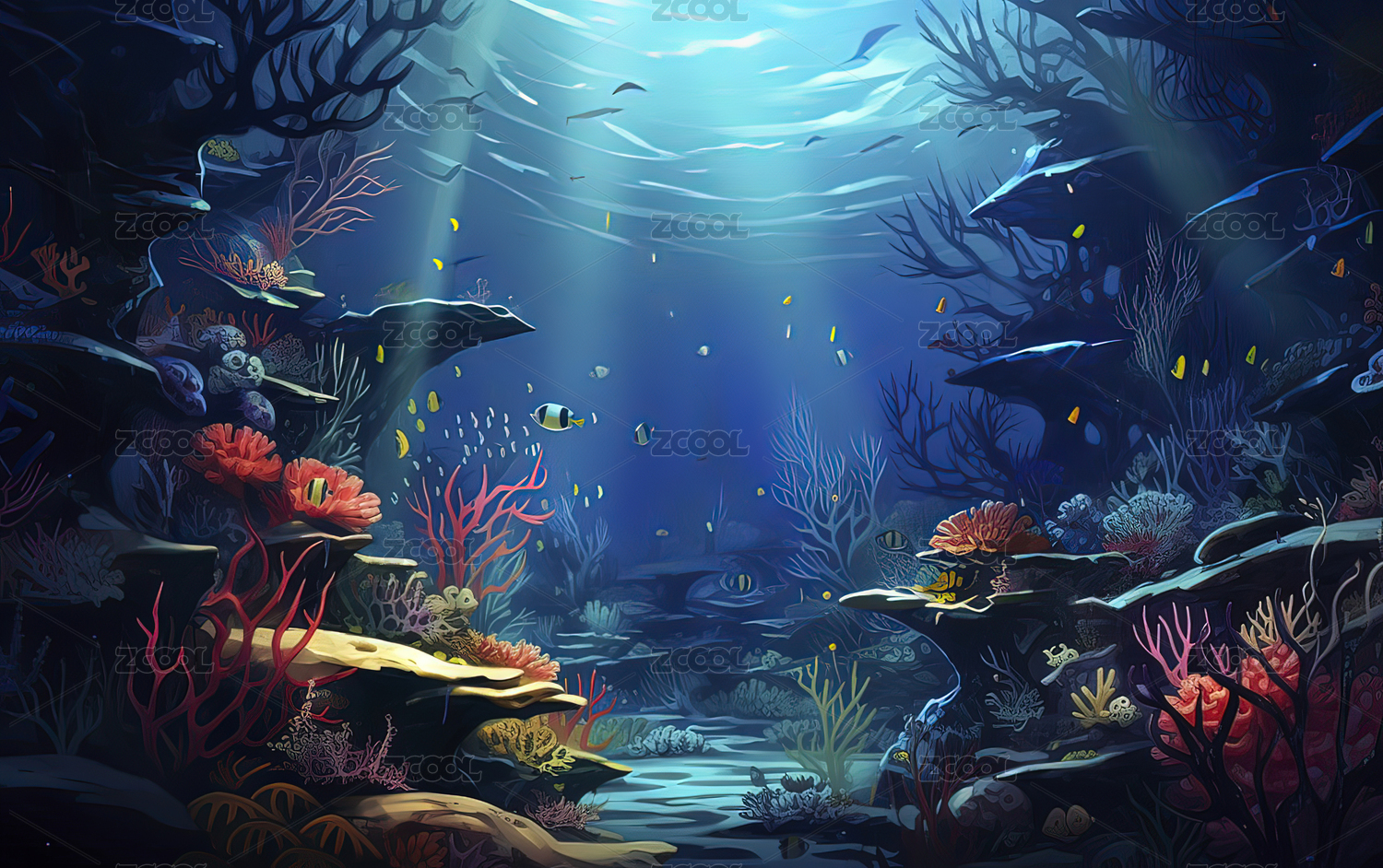 水下,潜水,海,迷幻,插画,海洋,海底,动物,抽象,彩色