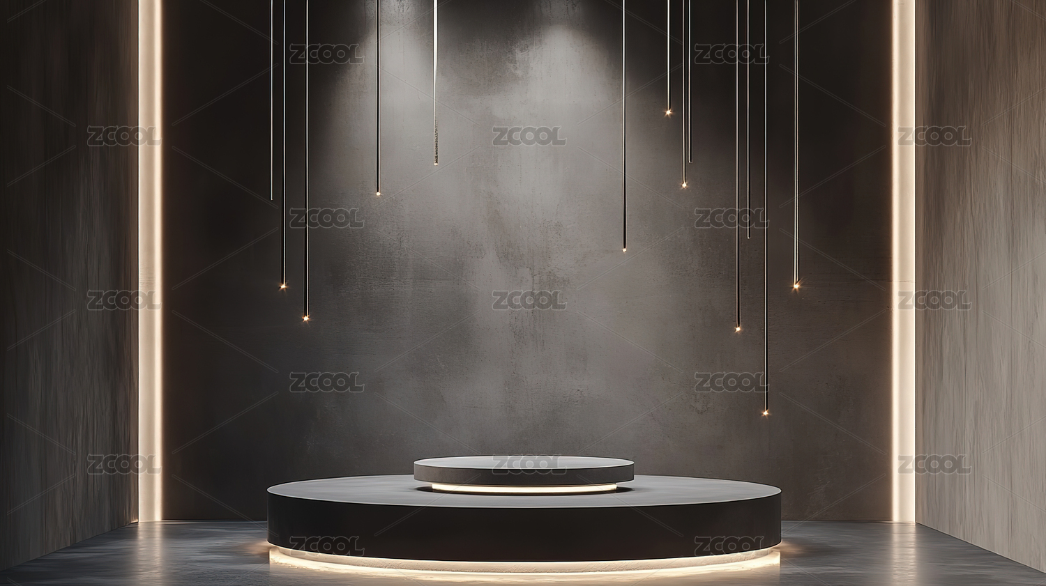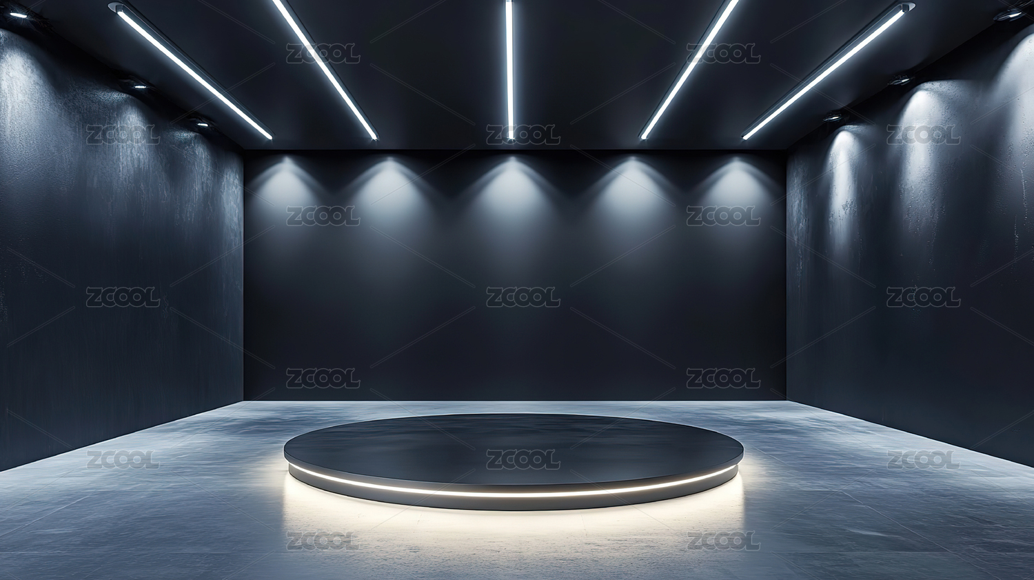 黑金现代几何建筑空间平台3D渲染抽象背景