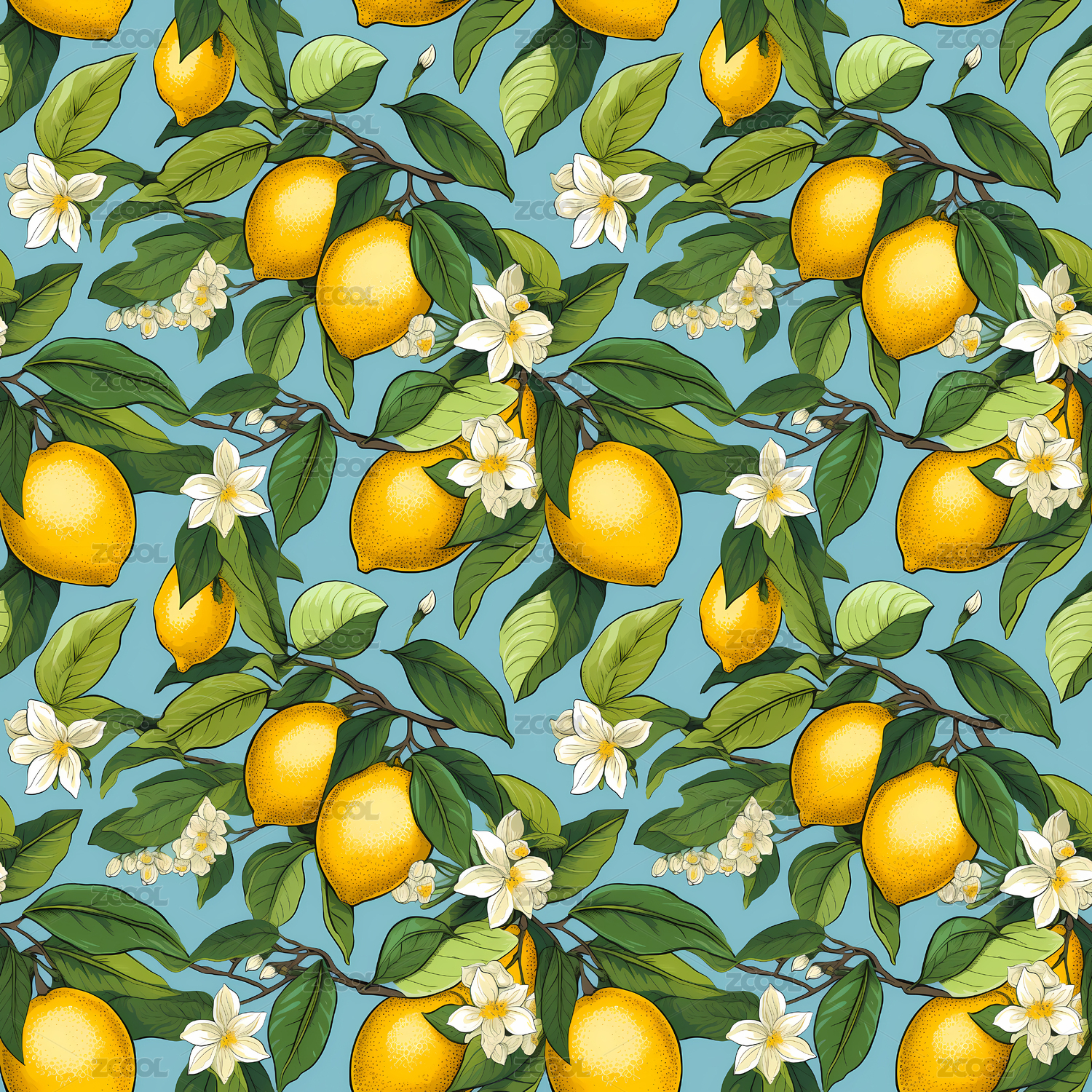柠檬,黄色,开花,叶子,水果,纺织品,植物,印花,图案,绘画