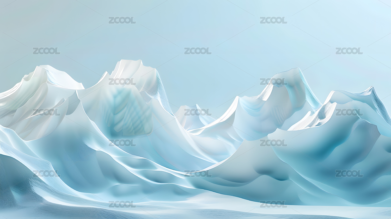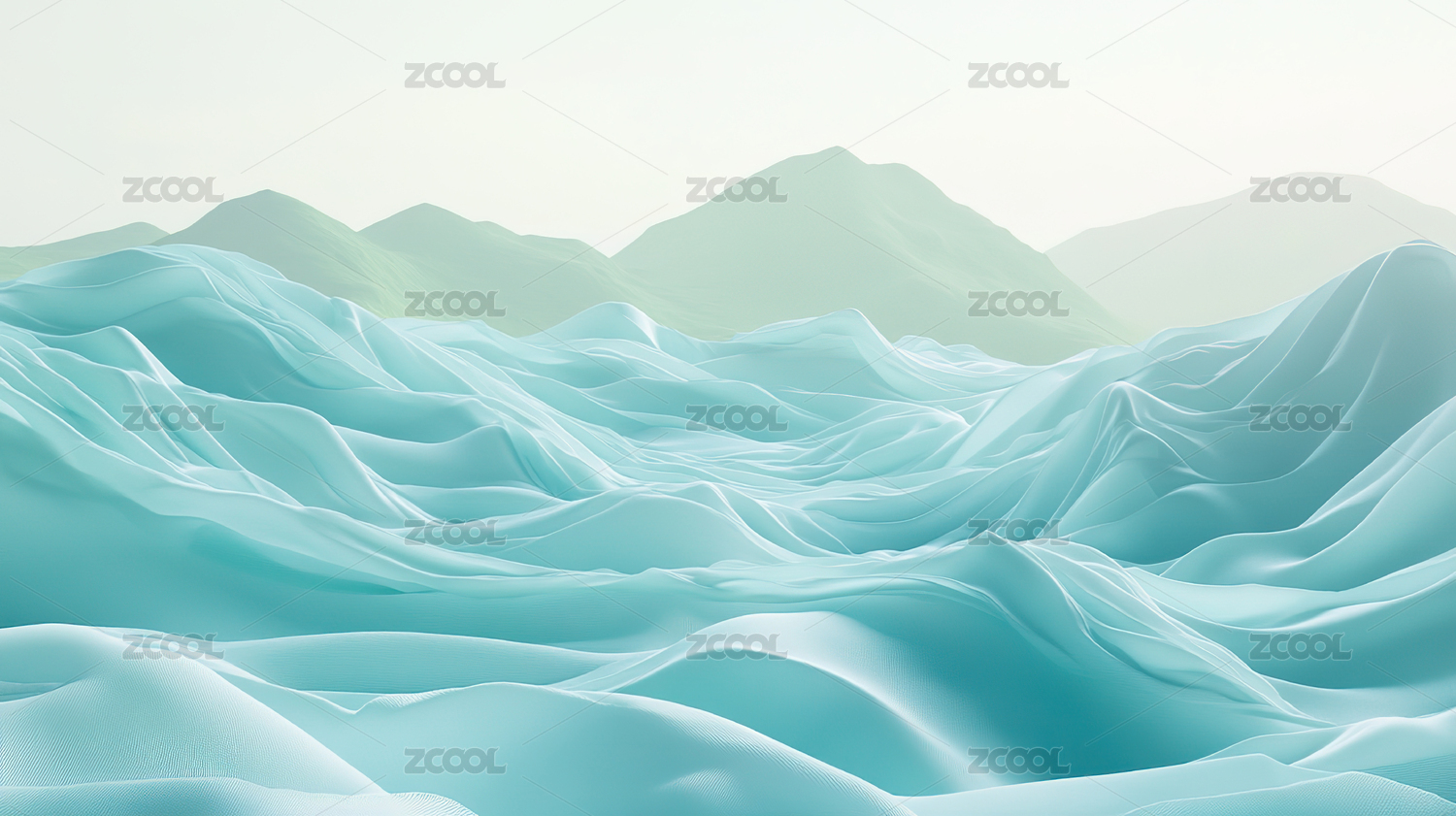 数码科技绿白色抽象曲线冰川插画海报背景