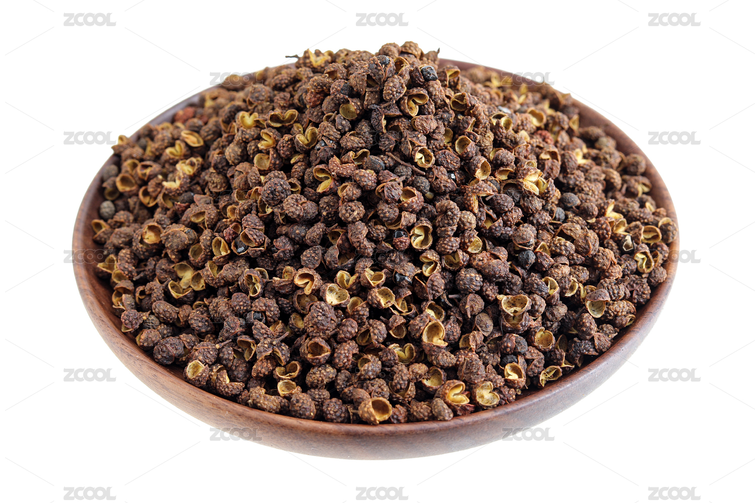 一盘子调味料食材花椒特写的白底图