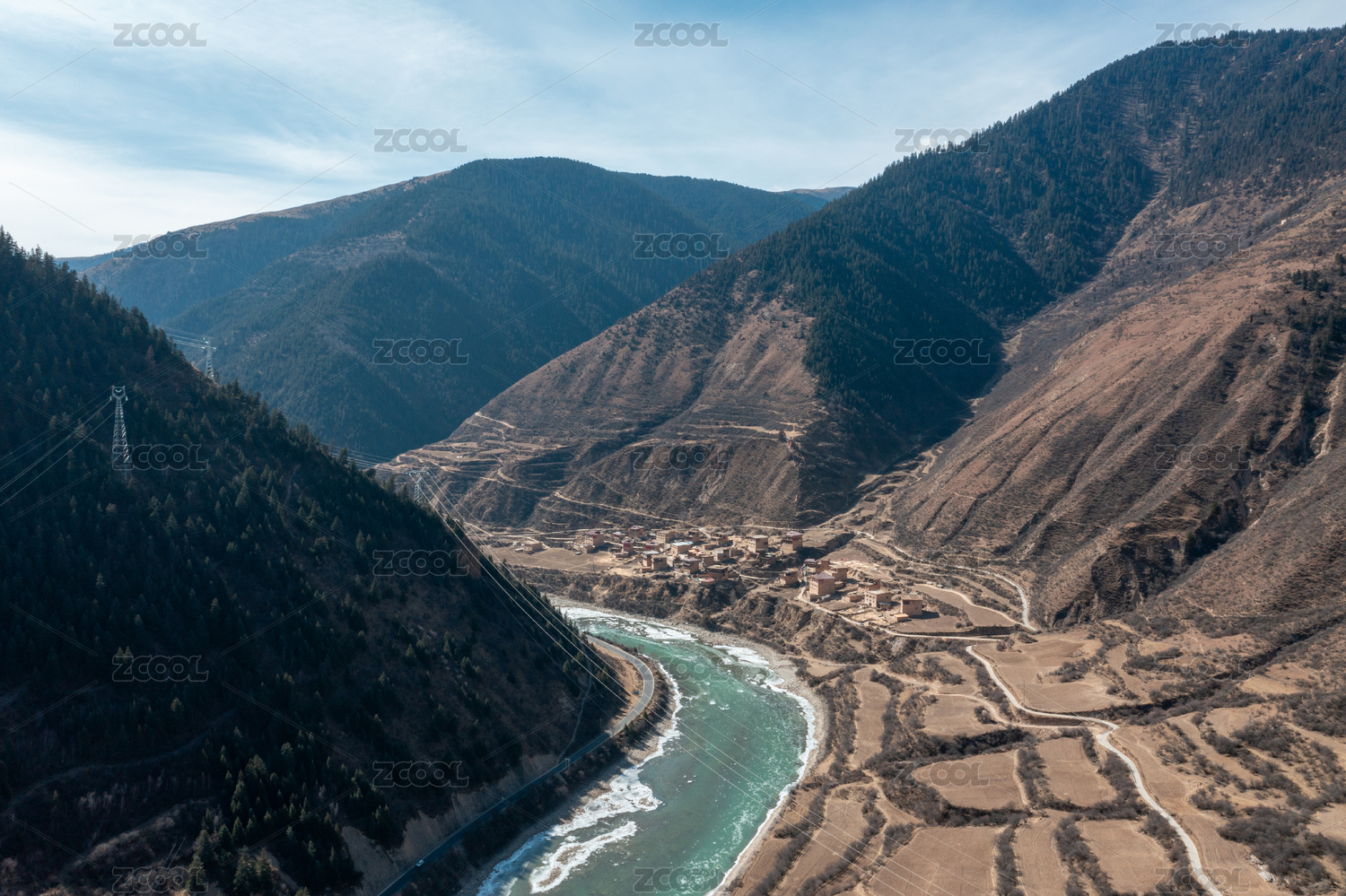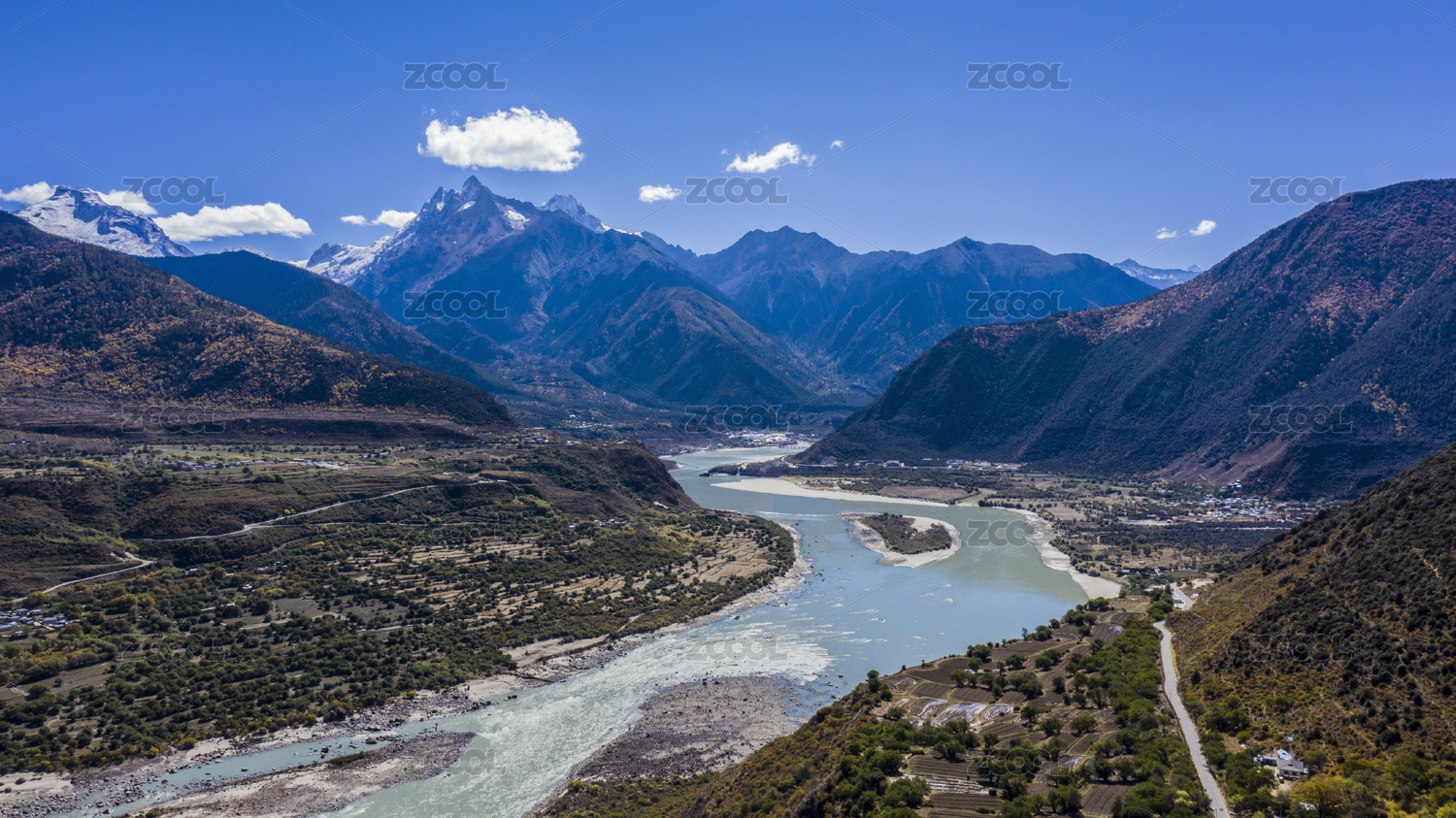 航拍中国四川和西藏交界处的金沙江上游河谷