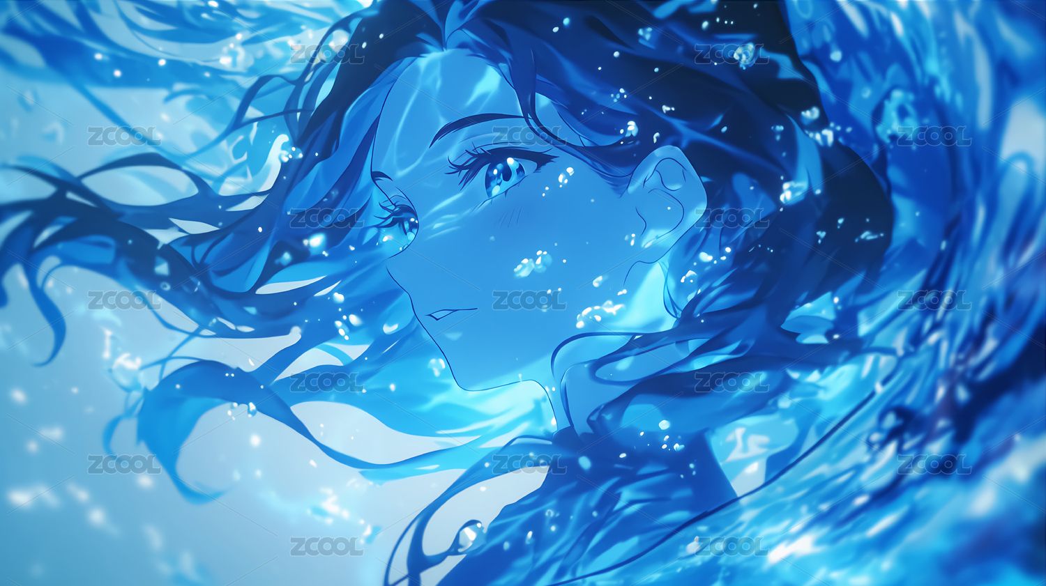 蓝色抽象二次元少女人像壁纸素材