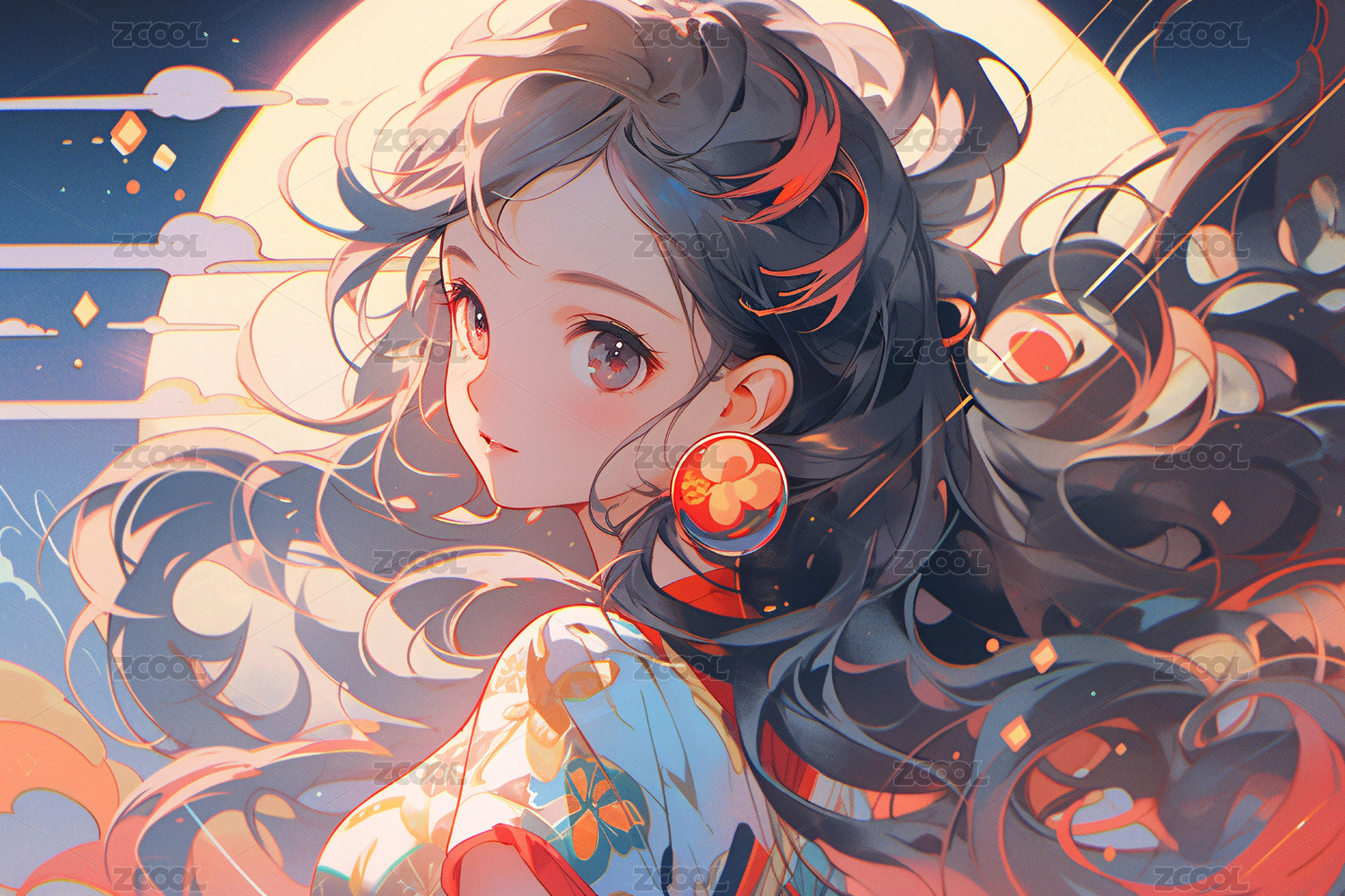 可爱的动漫女孩缤纷的色彩壁纸背景