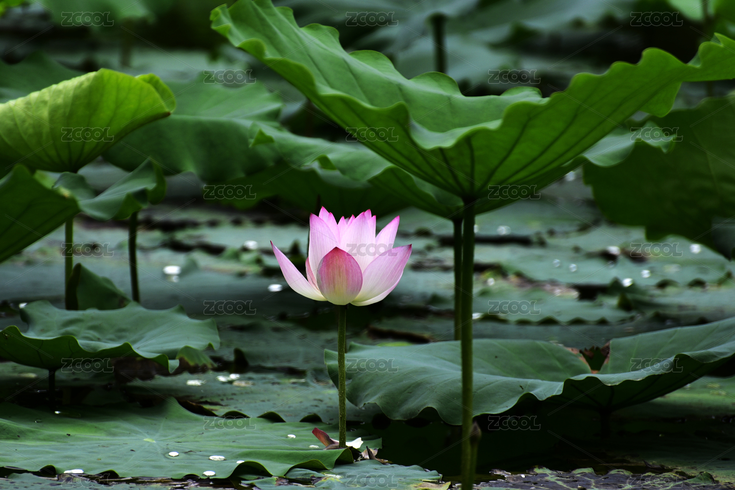 深圳市洪湖公园池塘里含苞待放的粉红色荷花