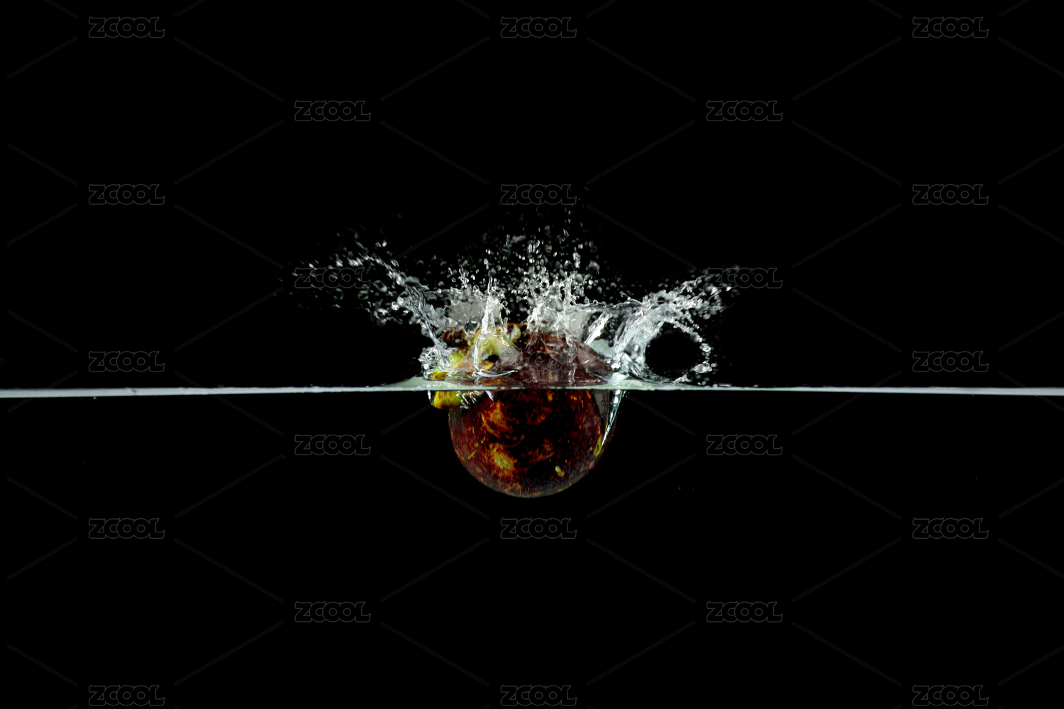 一颗掉落水中的芒果掉落水中激起了水花