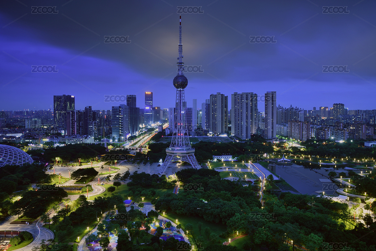 佛山电视塔和岭南明珠体育馆城市天际线夜景