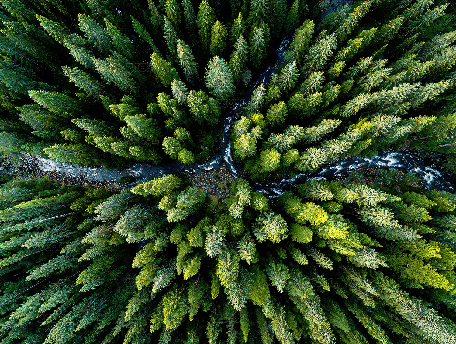 新疆伊犁库尔德宁云杉自然保护区森林航拍