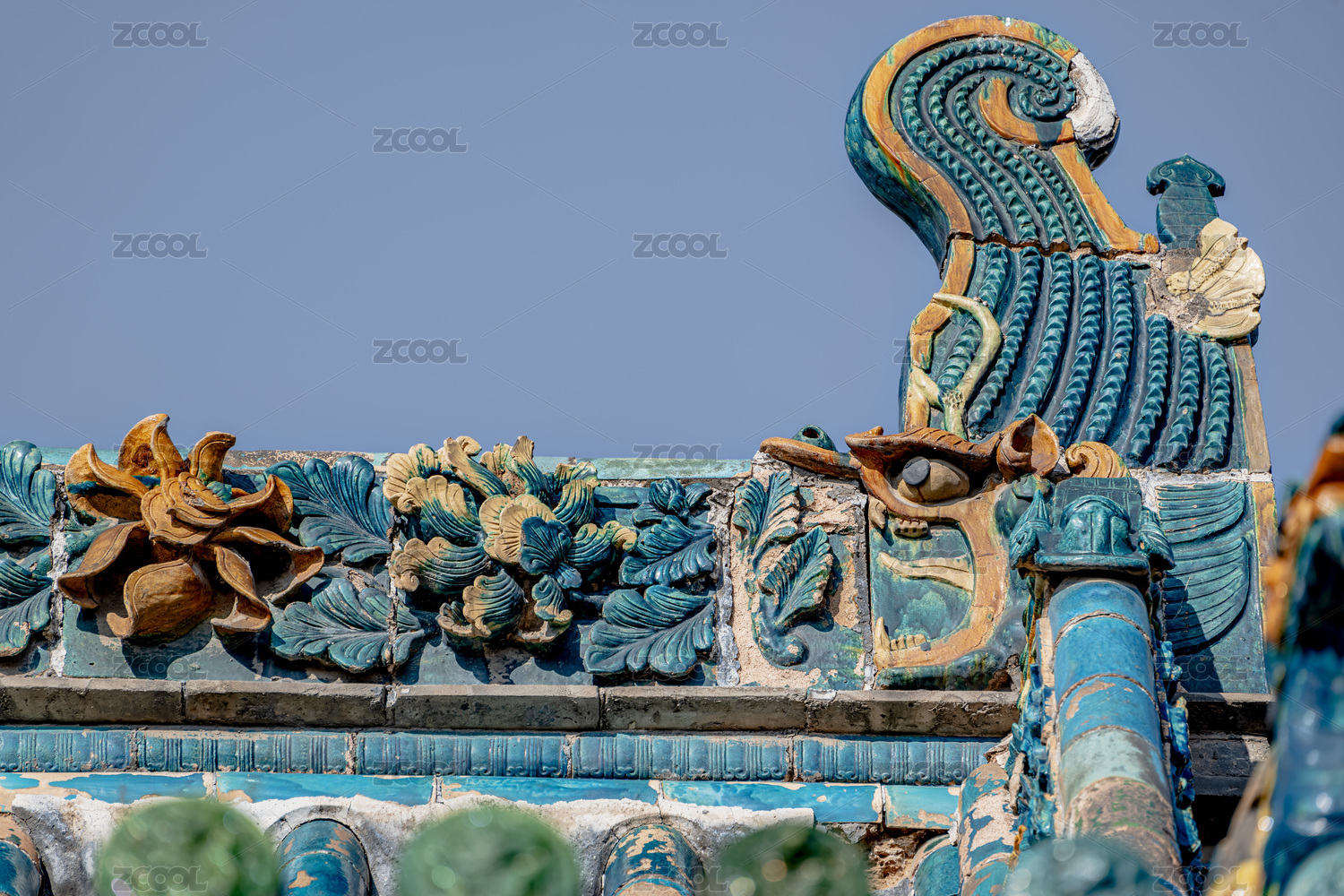 山西榆次老城城隍庙屋脊琉璃构建鸱吻