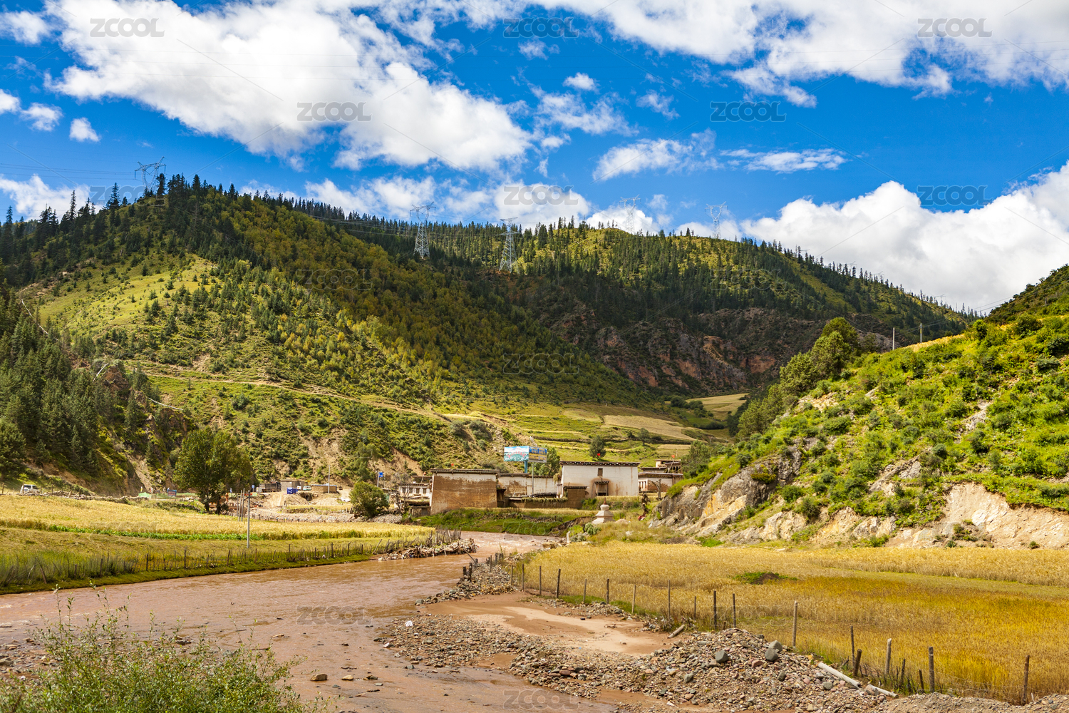 甘孜州康定甲根坝乡的藏族民居和优美的风光