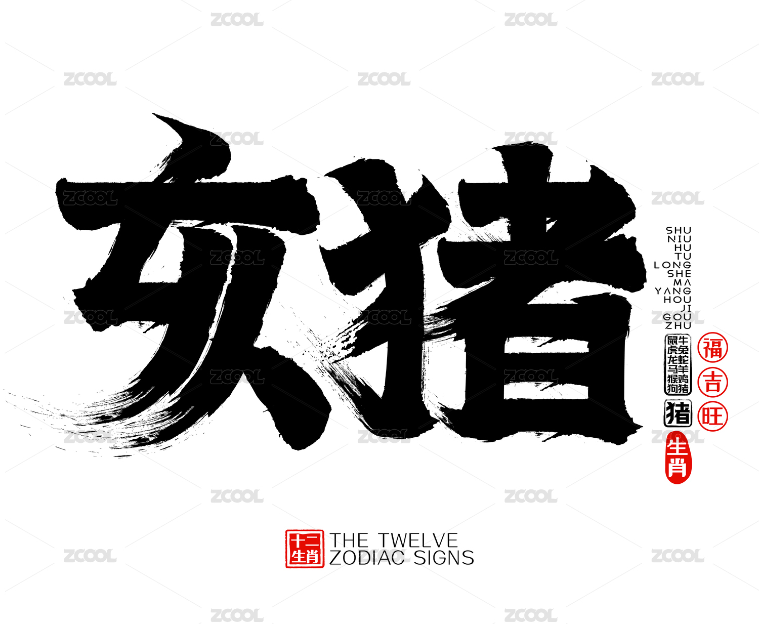 戍狗十二生肖喜庆水墨中国风矢量书法字