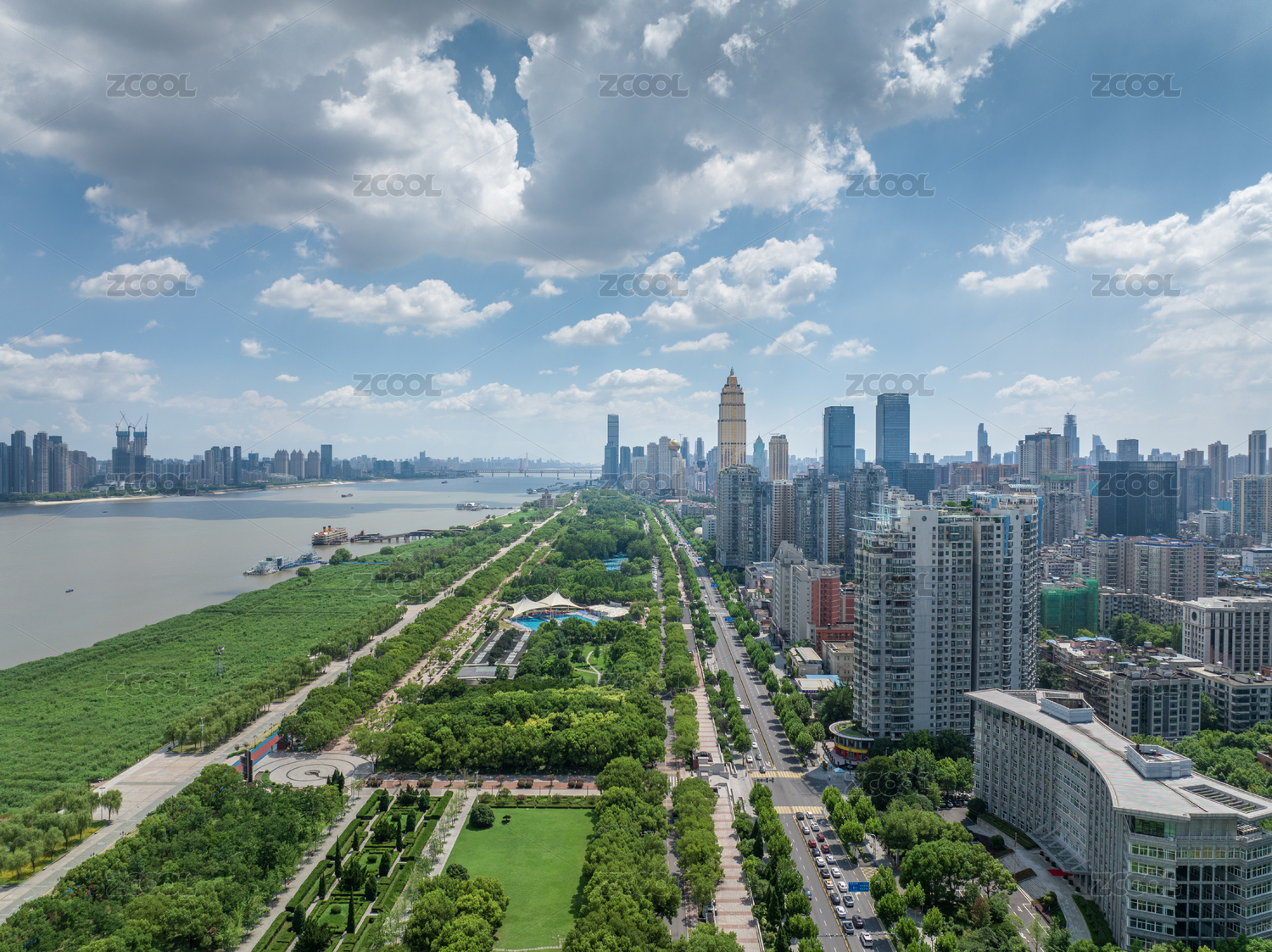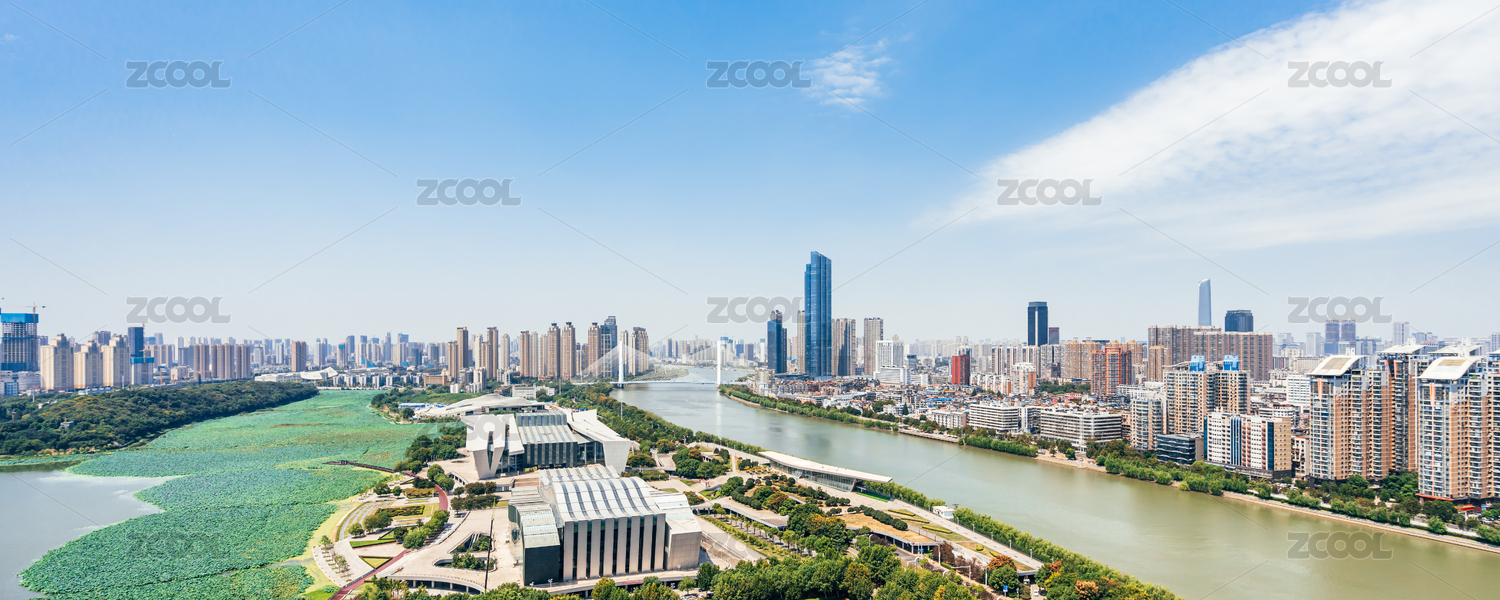 中国湖北武汉琴台大剧院和汉江城市晴天风光