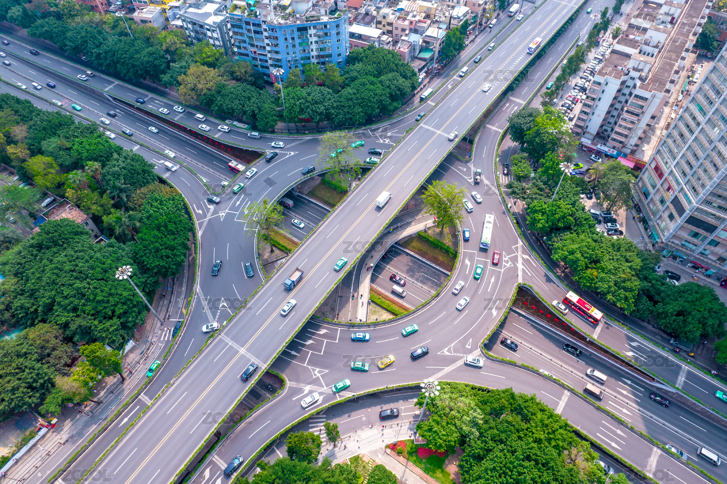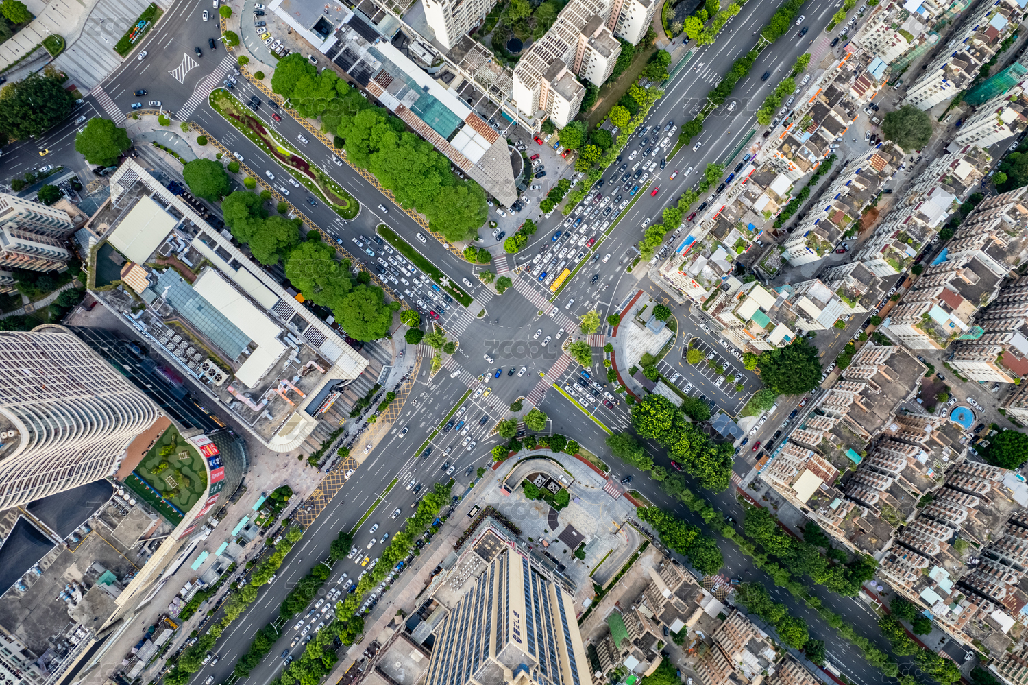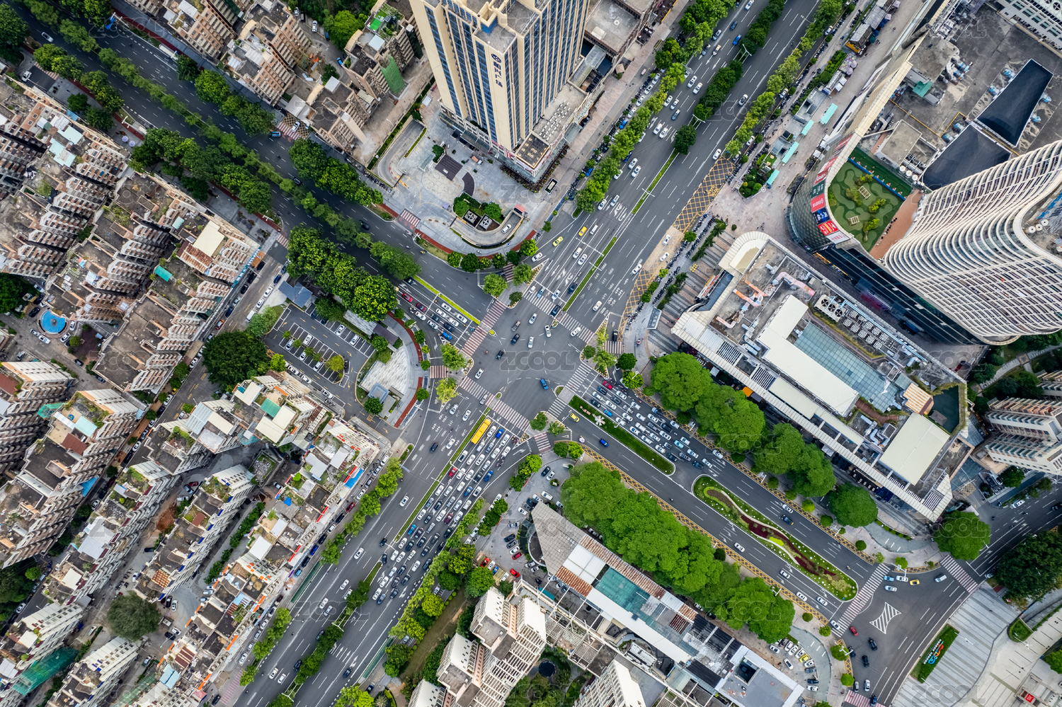 航拍中国广东中山博爱路兴中道城桂公路交叉口