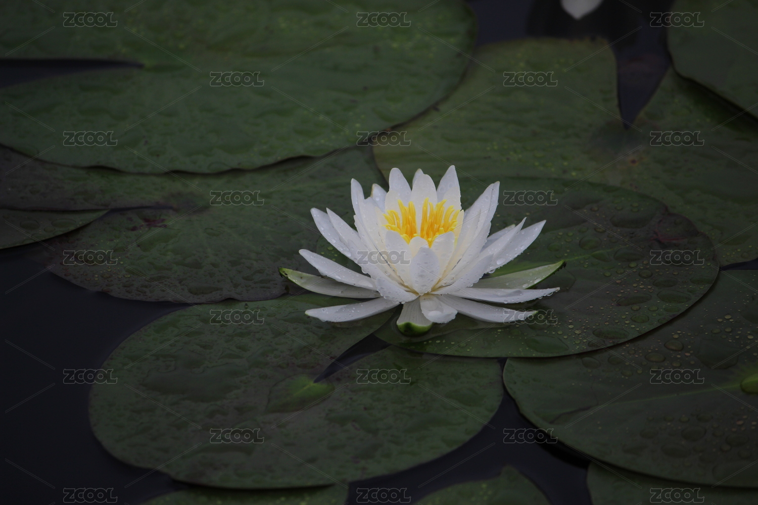 池塘中雨后的白色睡莲花开
