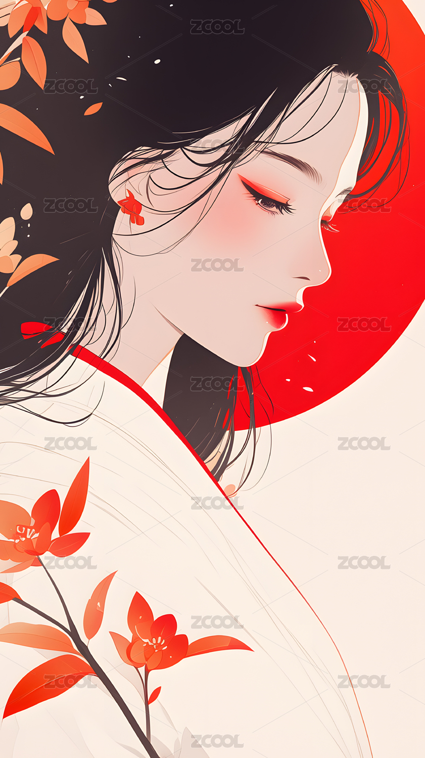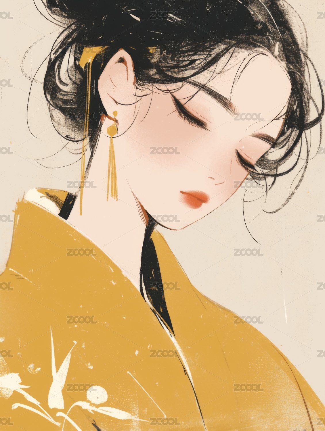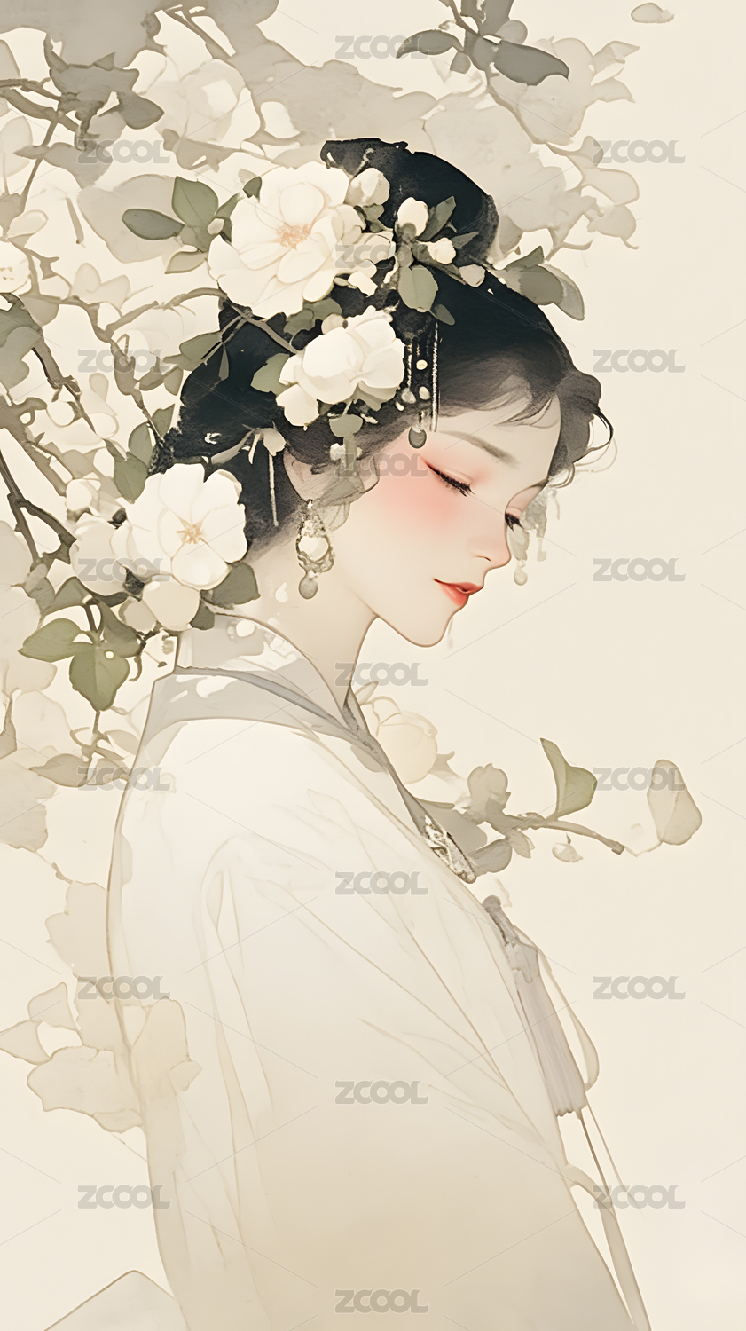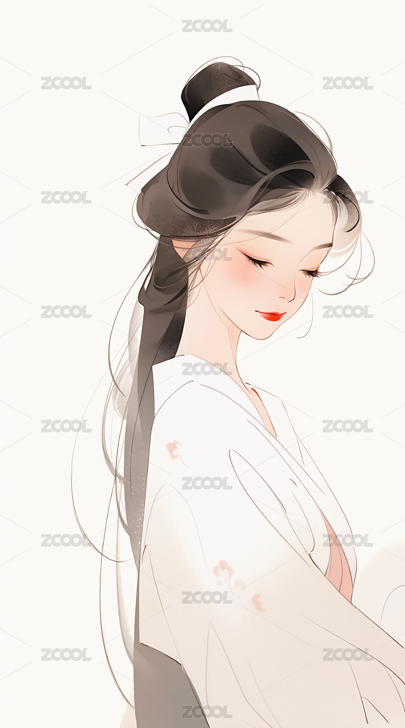 水墨风格古风女子插画