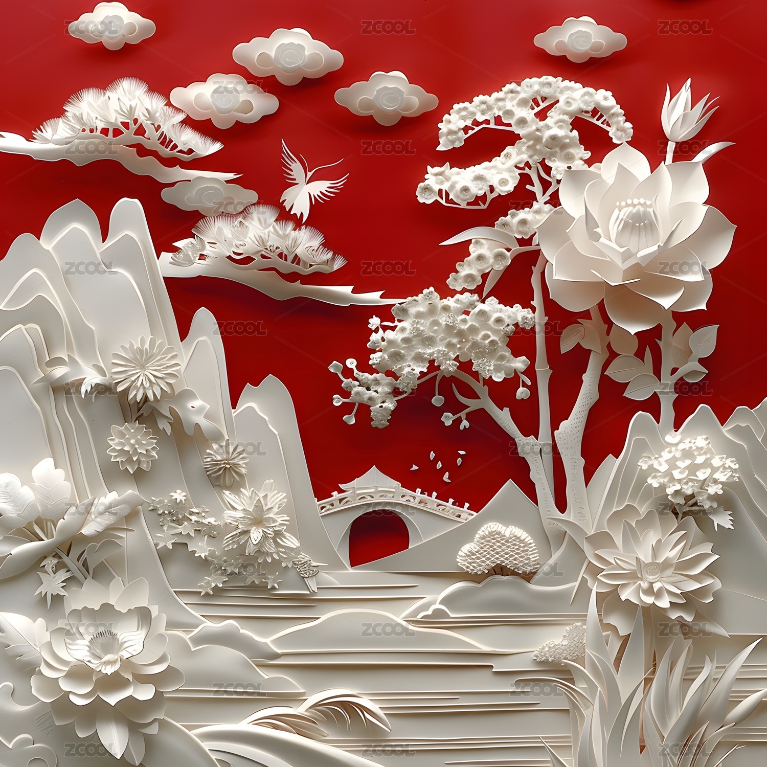 3d,纸雕,剪纸,浮雕,艺术,装饰,国风,中国,水墨,古风