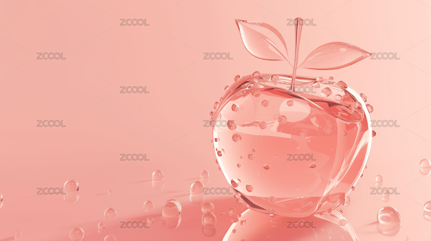 桌上带叶粉红色的桃子模型3D卡通立体插画