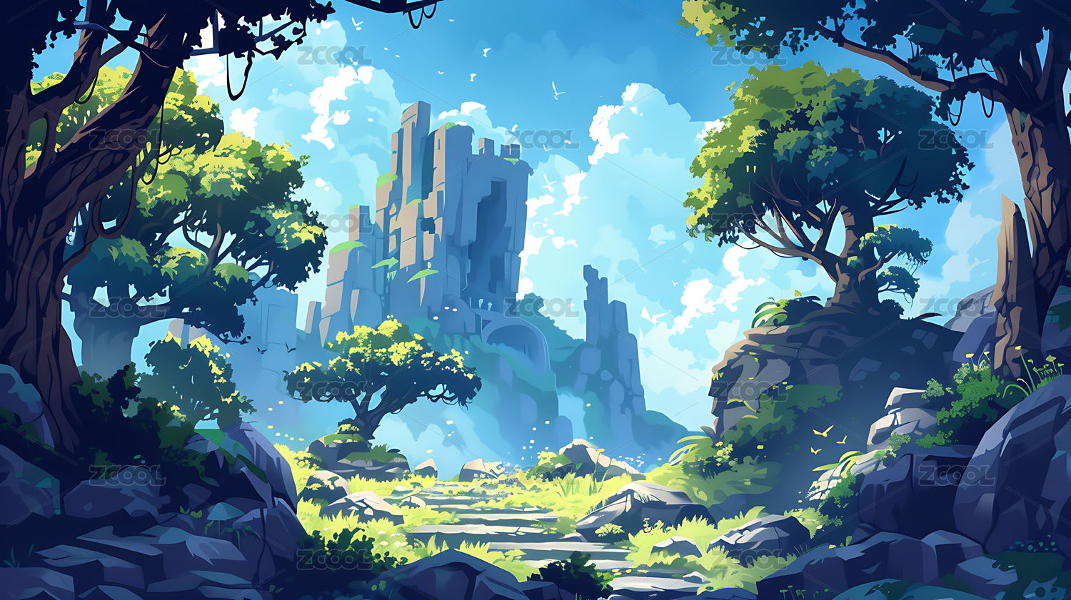 游戏,背景,插画,卡通,动画,手游,风景,自然,植物,场景