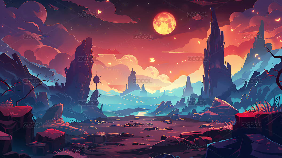 插画,卡通,游戏,动画,手游,背景,风景,自然,植物,场景