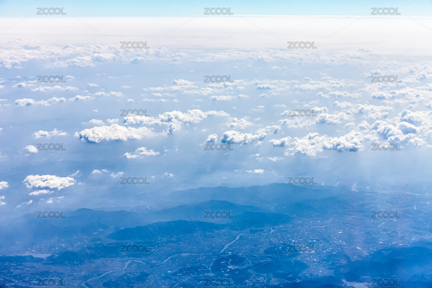 云层之上俯拍大地