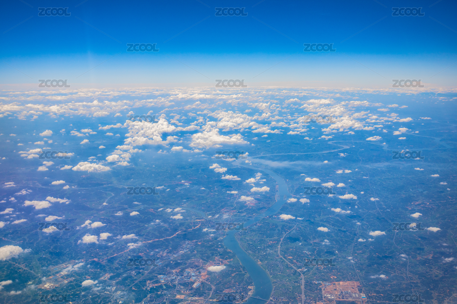 从高空拍摄蓝天白云天际线