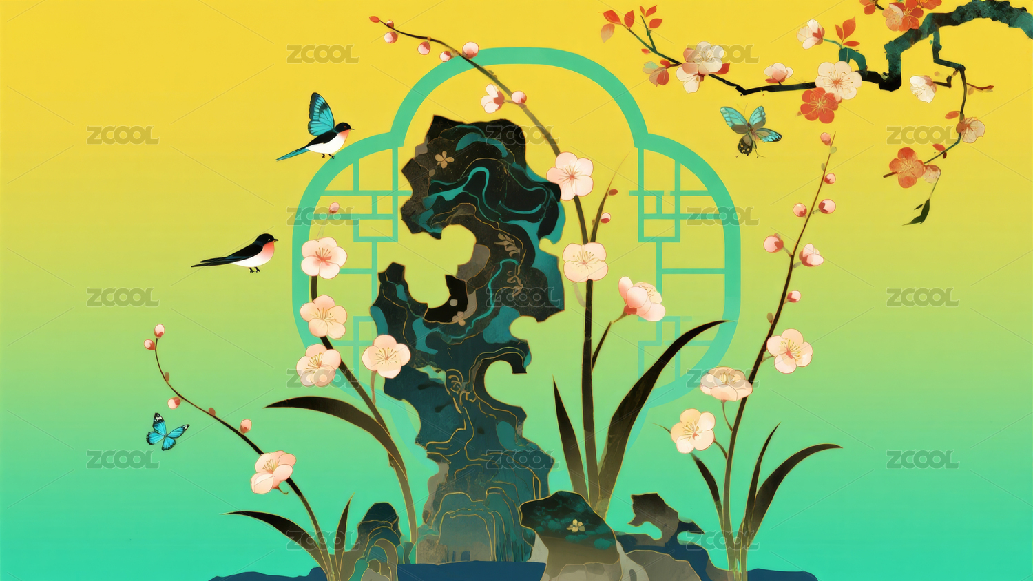 新国潮荷花池塘蜻蜓飞江南亭子泛舟插画