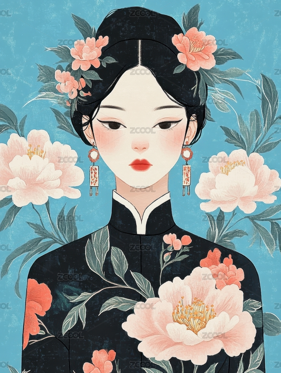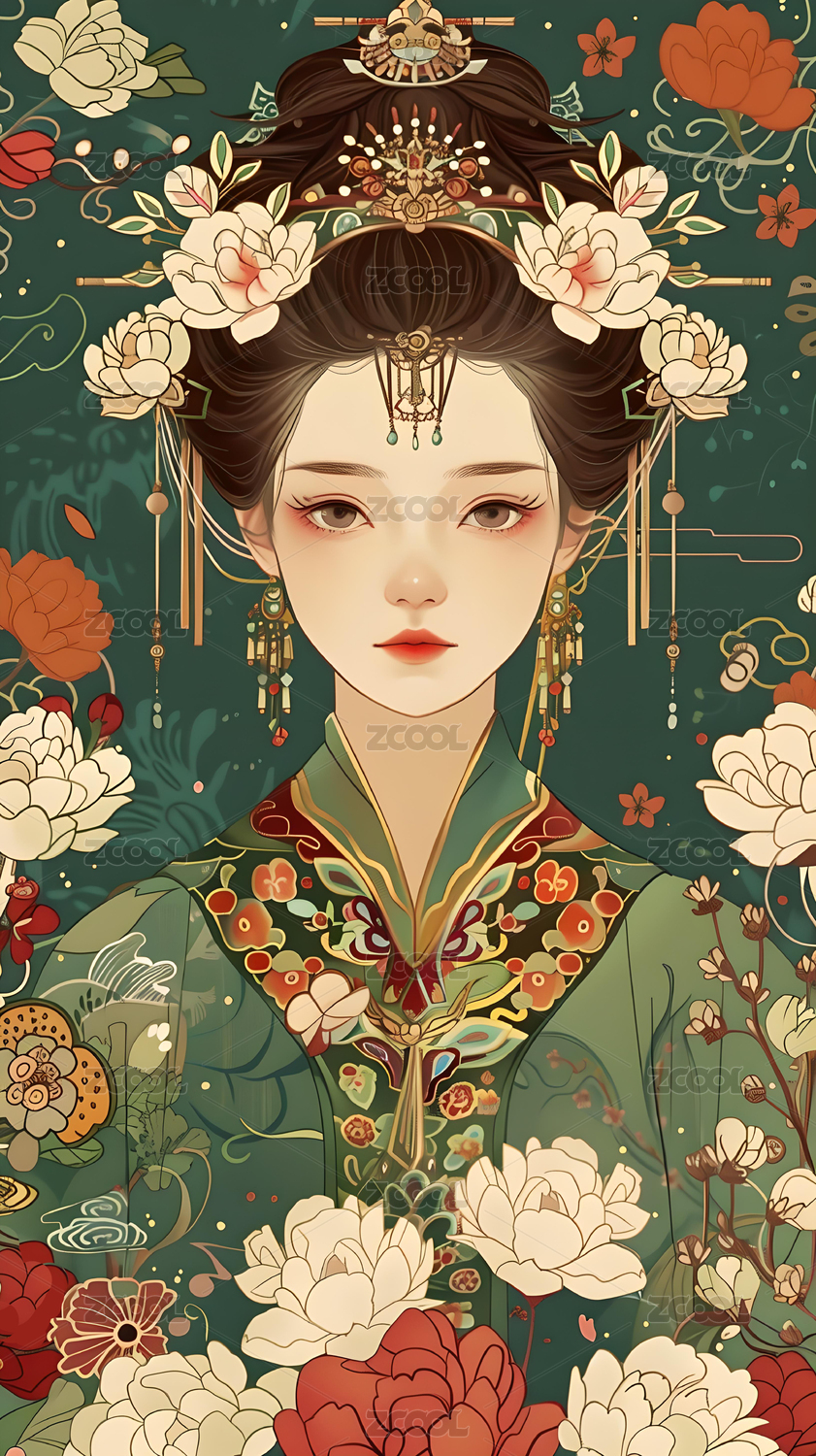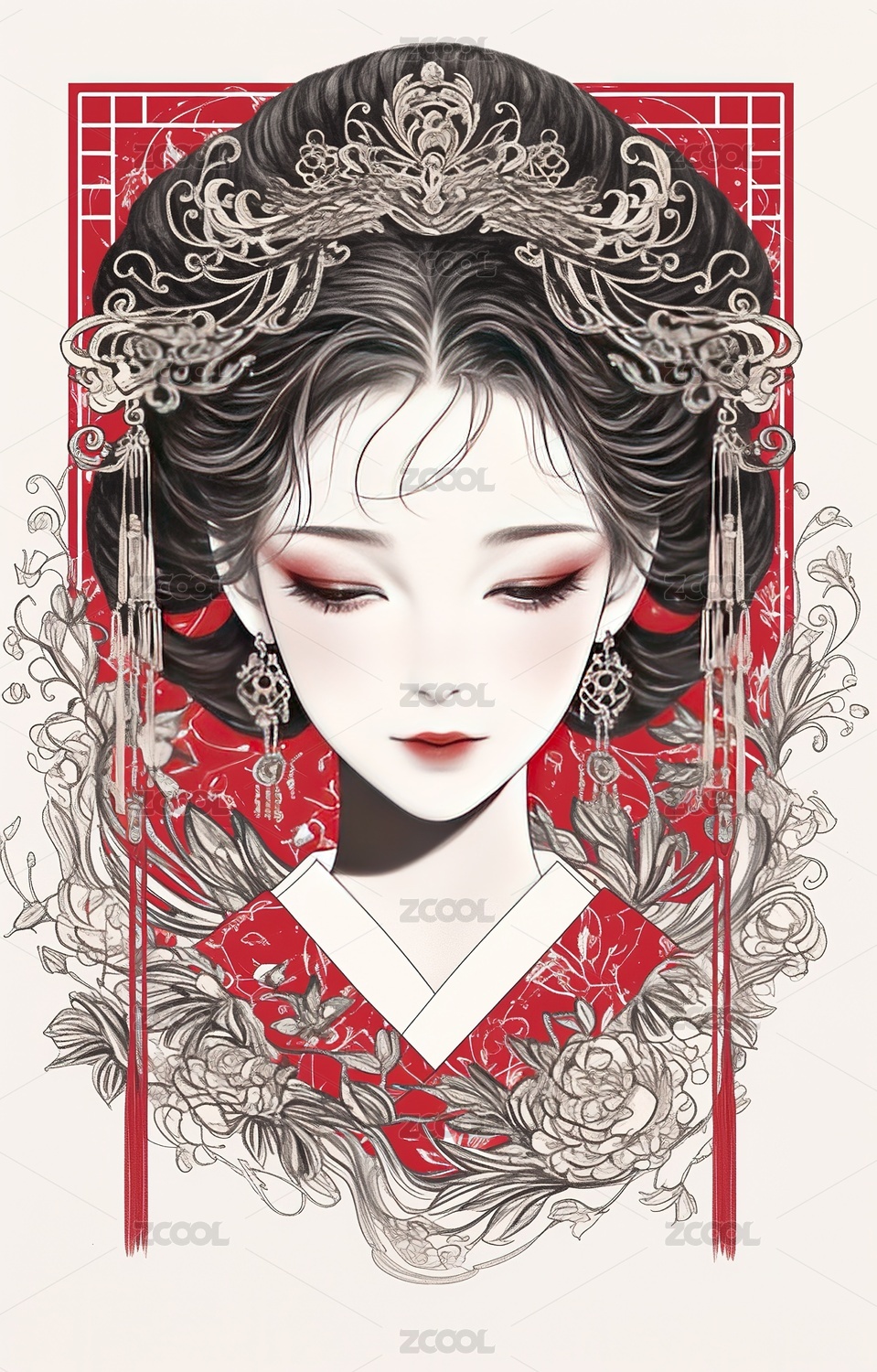 AIGCFG,中式,国潮,中国,古代,服装,女人,女,女孩,半身
