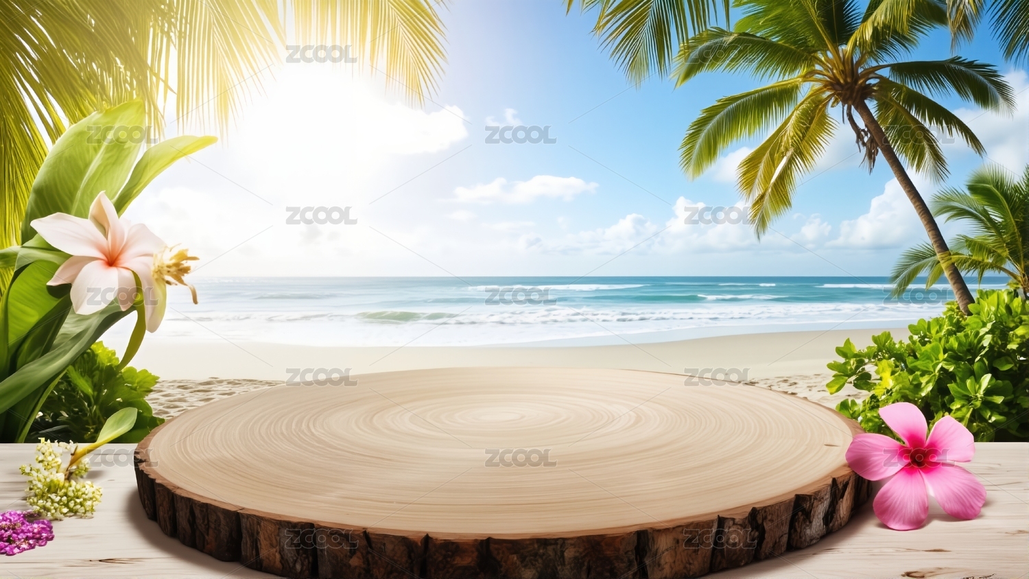 3D渲染夏日热带沙滩海洋风格产品展台背景