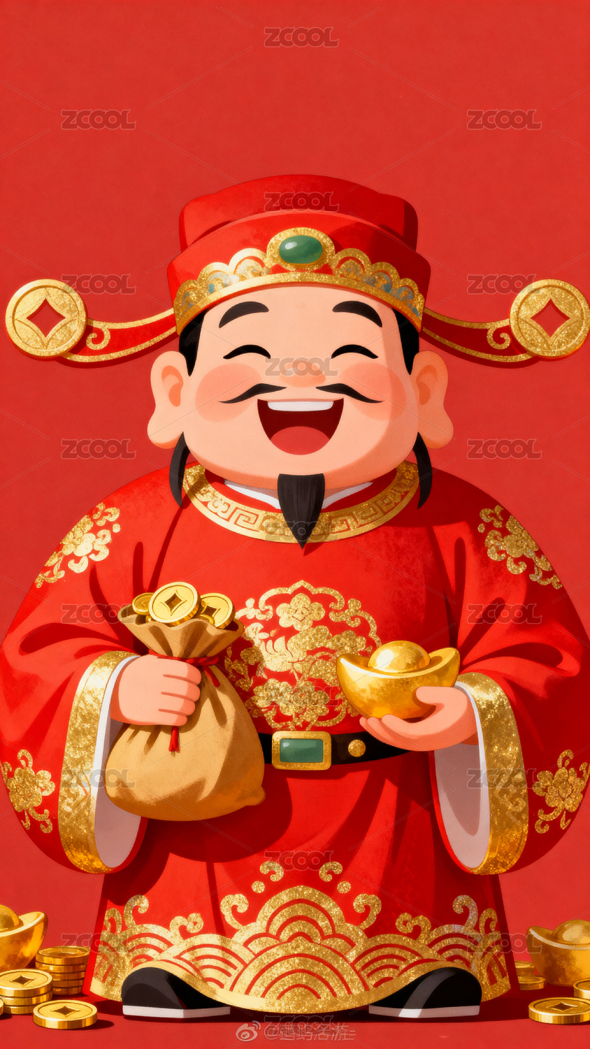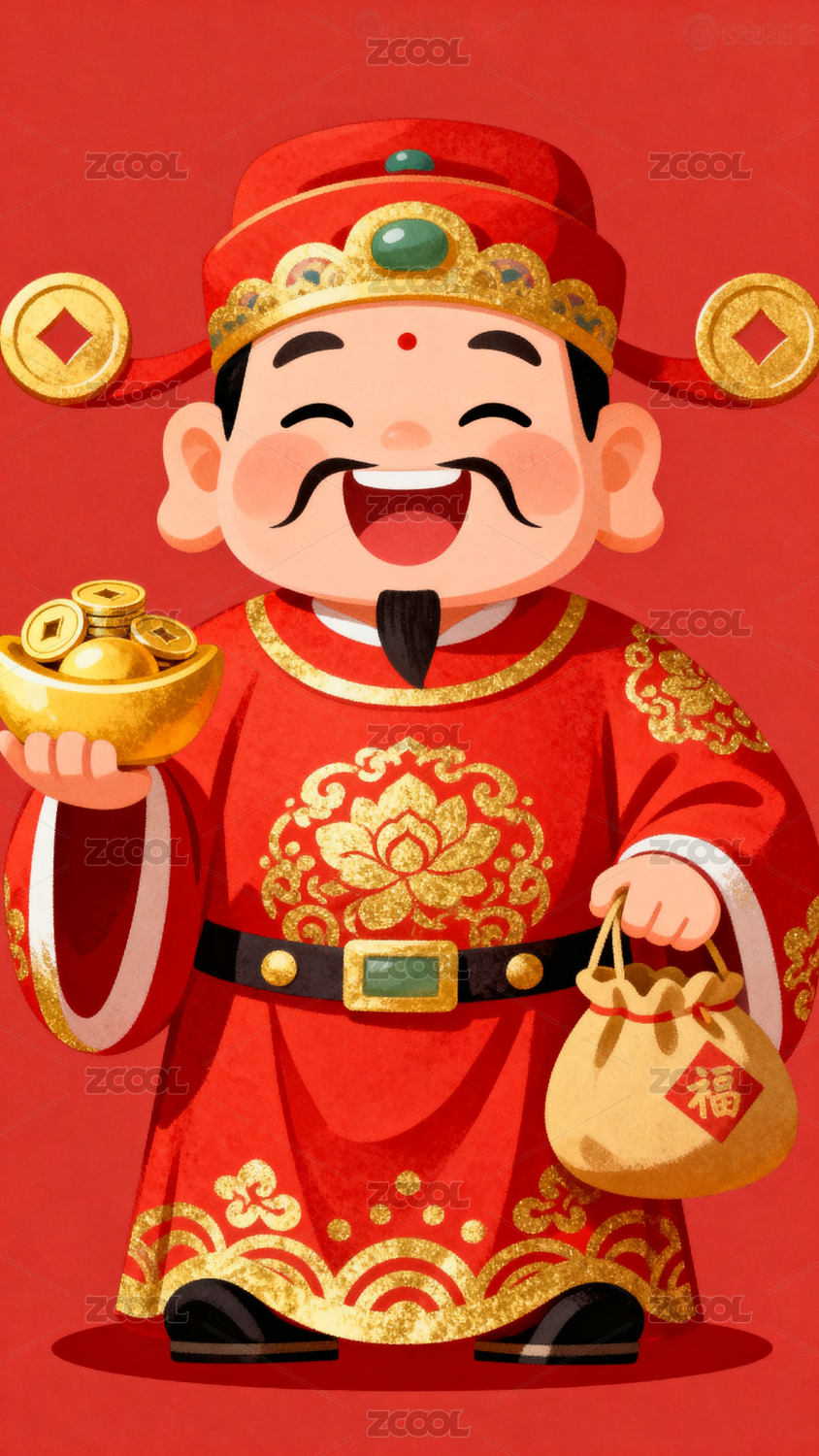 财神卡通与金钱祝福寓意
