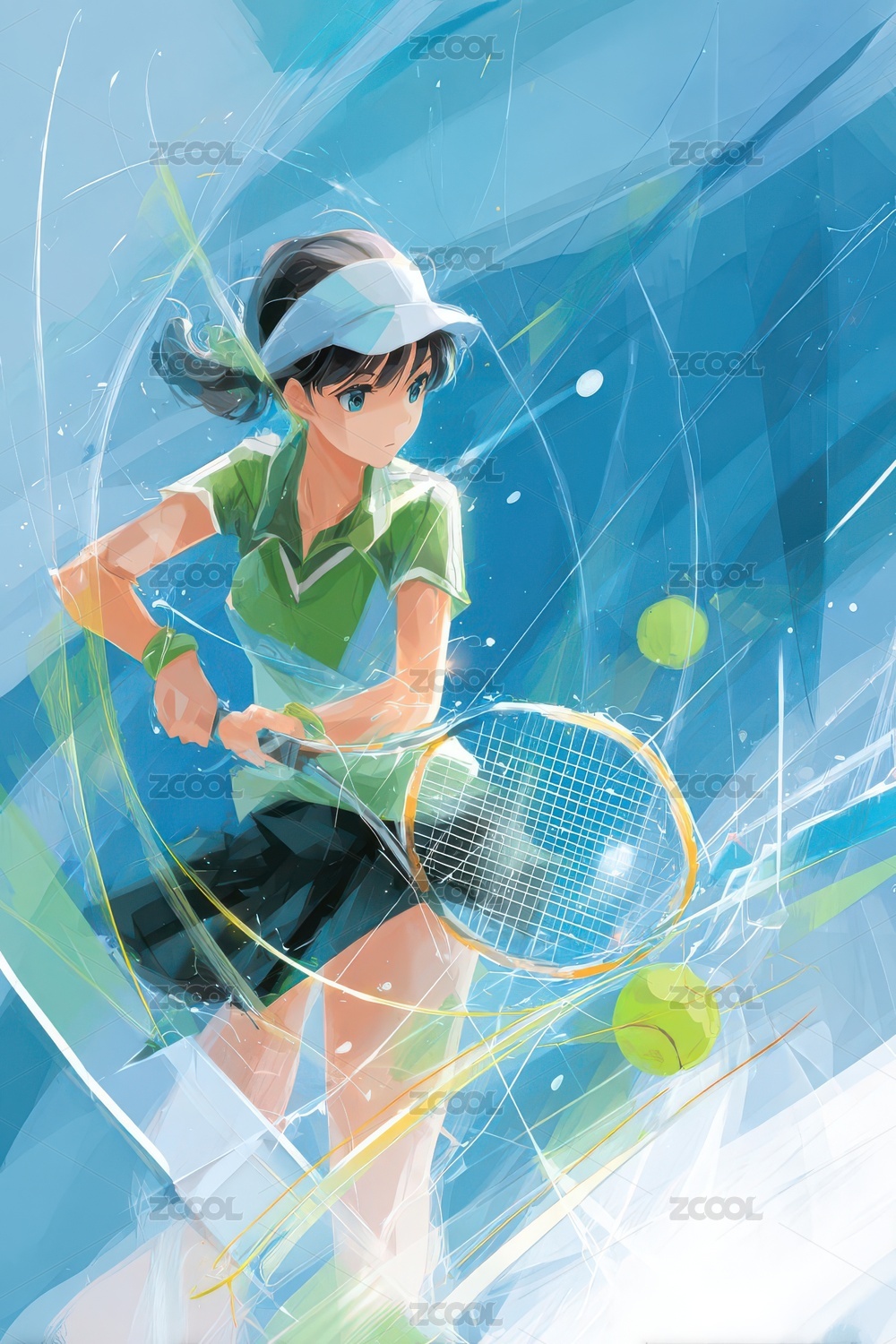 AIGCFG,复古,日漫,插画,插图,怀旧,80年代,运动,打网球,女孩