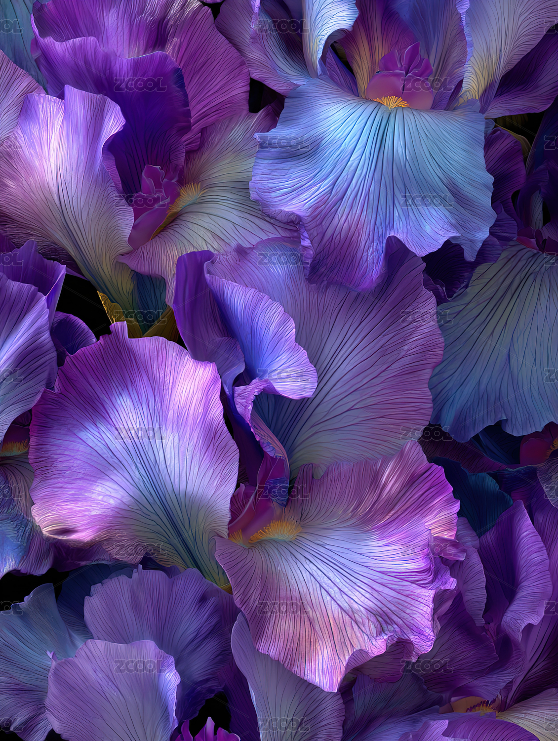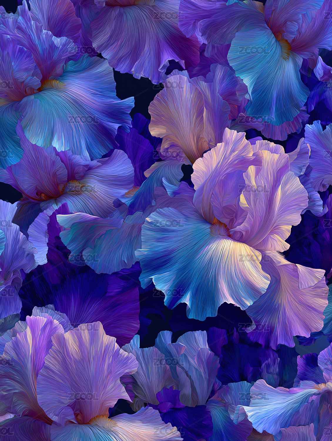紫色油画鸢尾花植物无缝印花四方连续图案