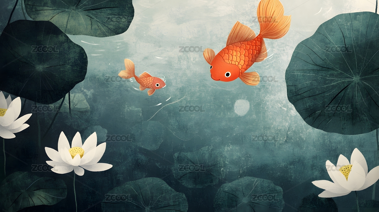 锦鲤,金鱼,黑色,红,白,白色,红色,背景,好运,水里