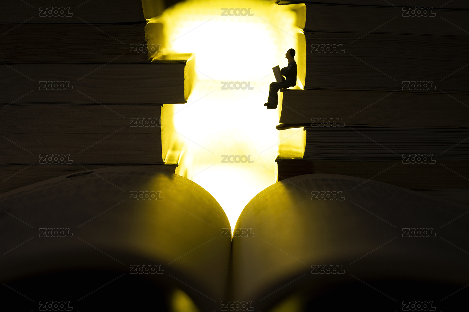 微缩创意书本夜晚大门发光的灯泡教师节成功
