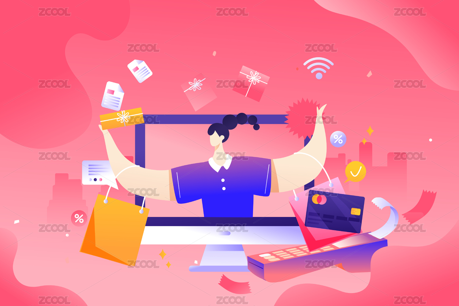 网购消费插画