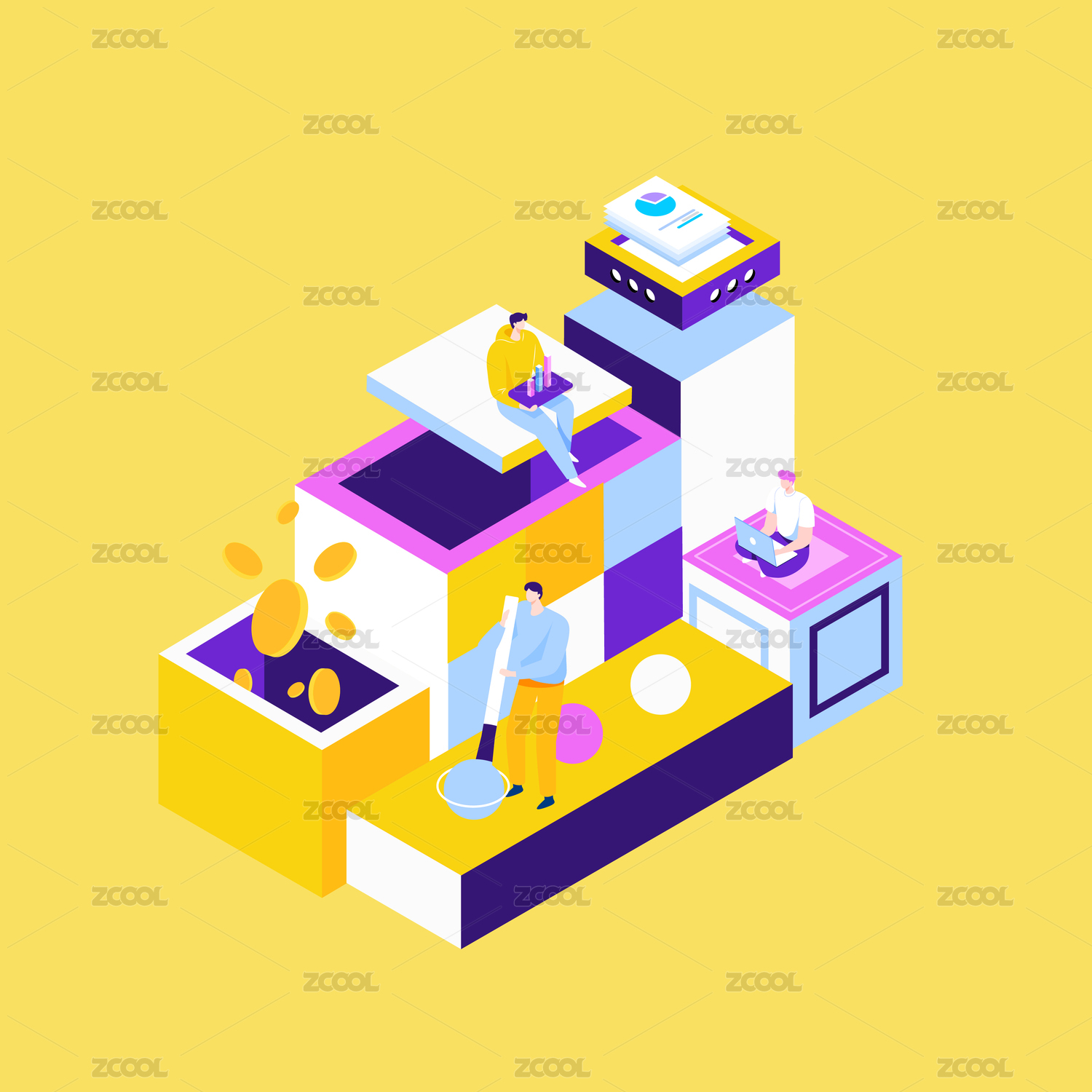 云服务科技数据互联网金融商务办公职场扁平矢量插画