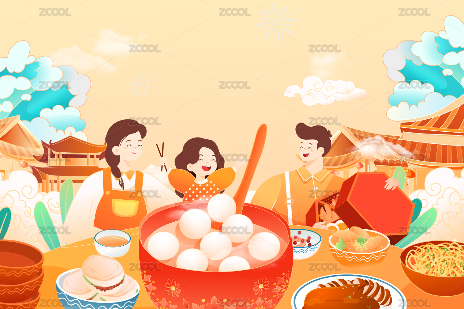 2023卡通兔年元宵节吃汤圆猜灯谜正月十