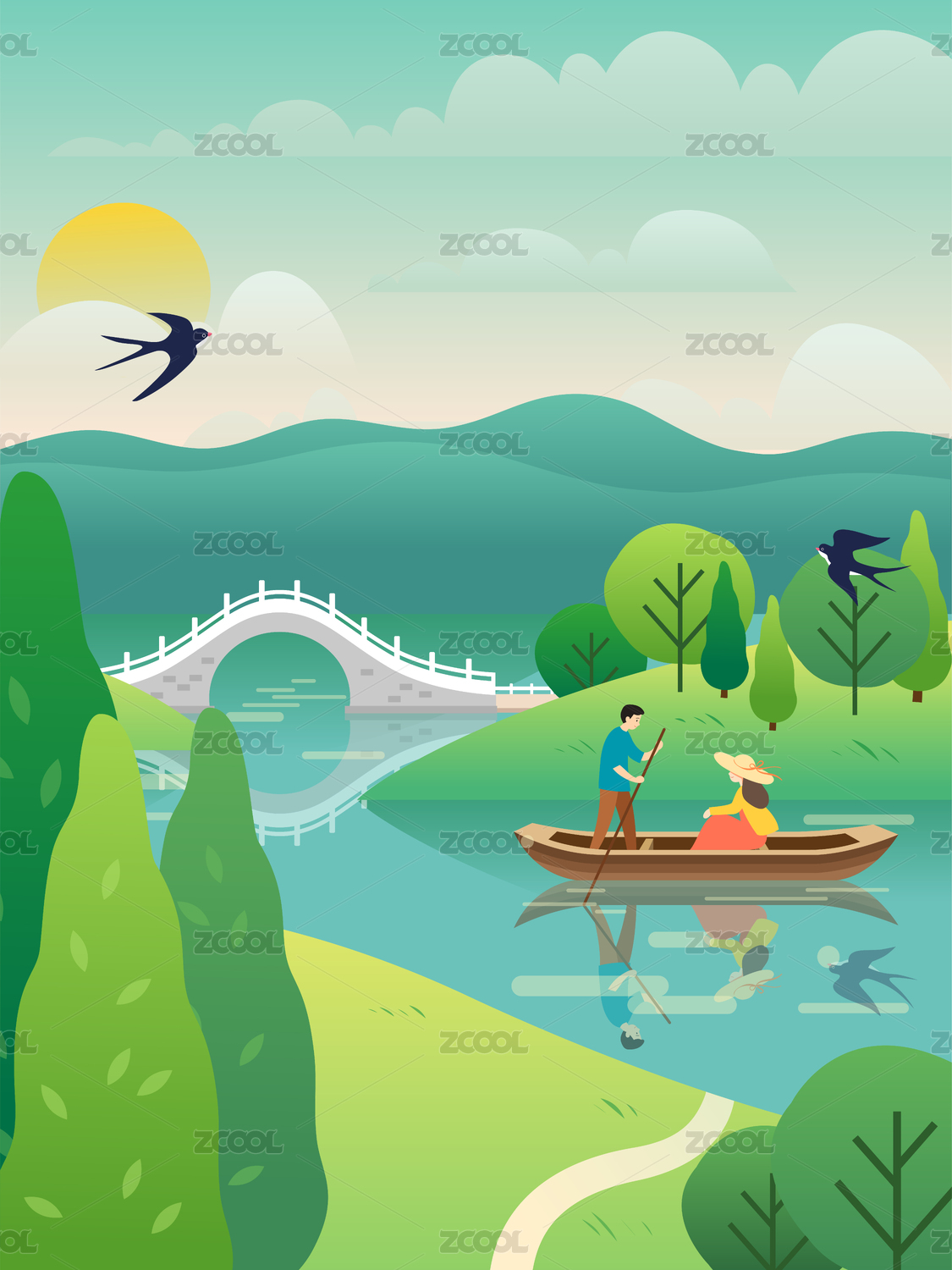 春季旅游风景矢量插画