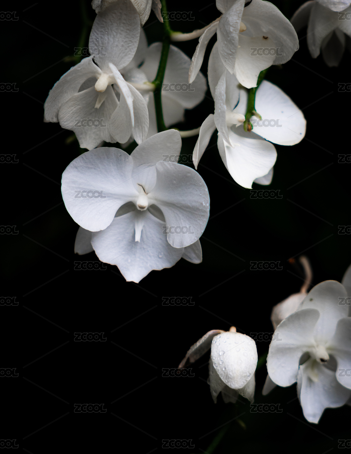 黑色背景下V3白色蝴蝶兰的特写镜头