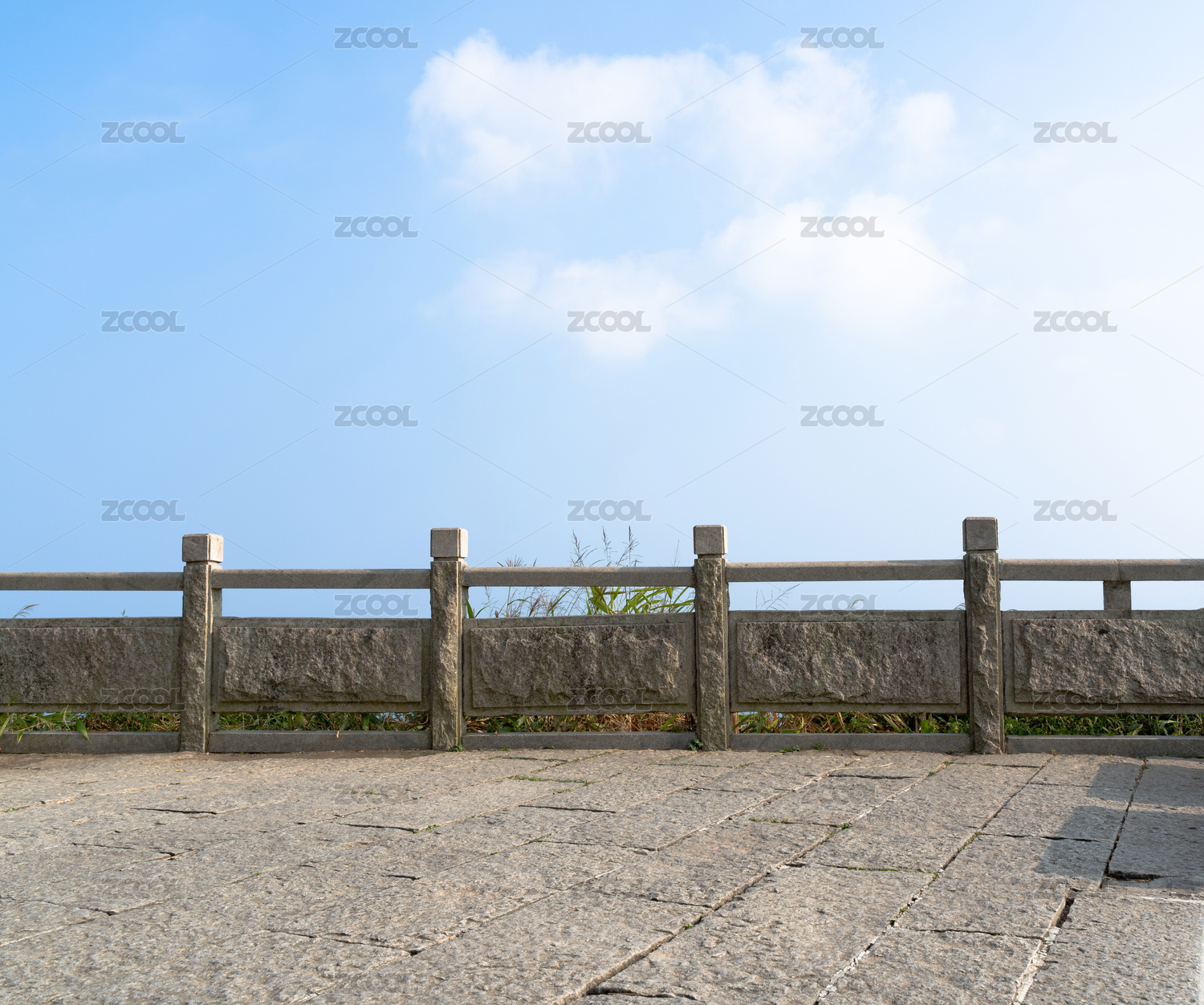 中国深圳梧桐山,蓝天白云下的山顶广场