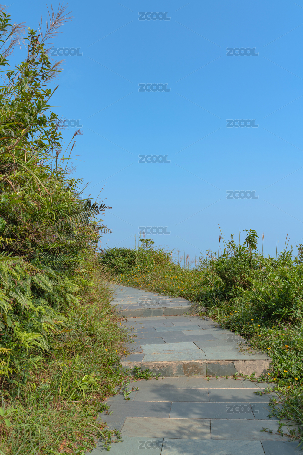 中国深圳梧桐山,蓝天下的上山石阶小路