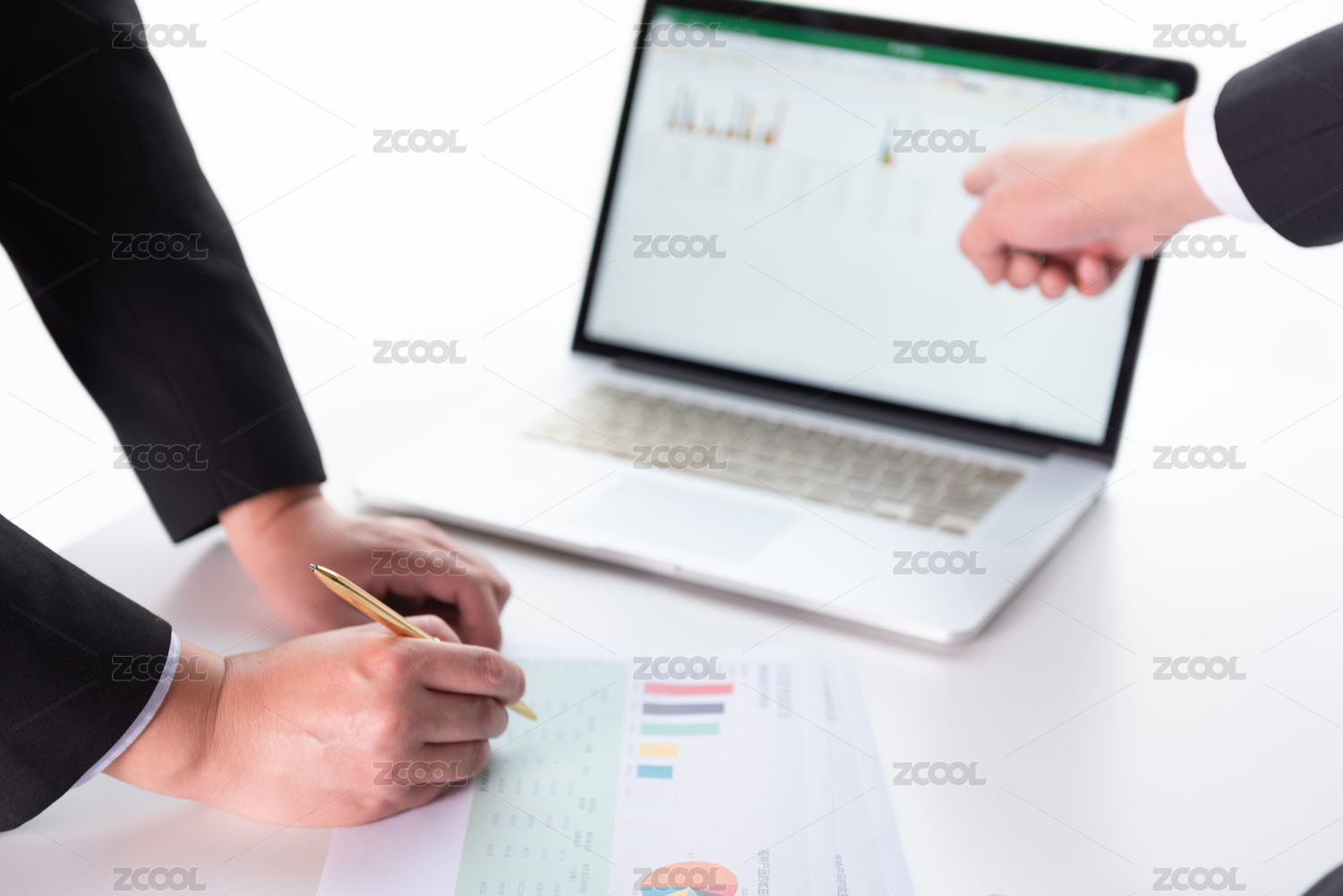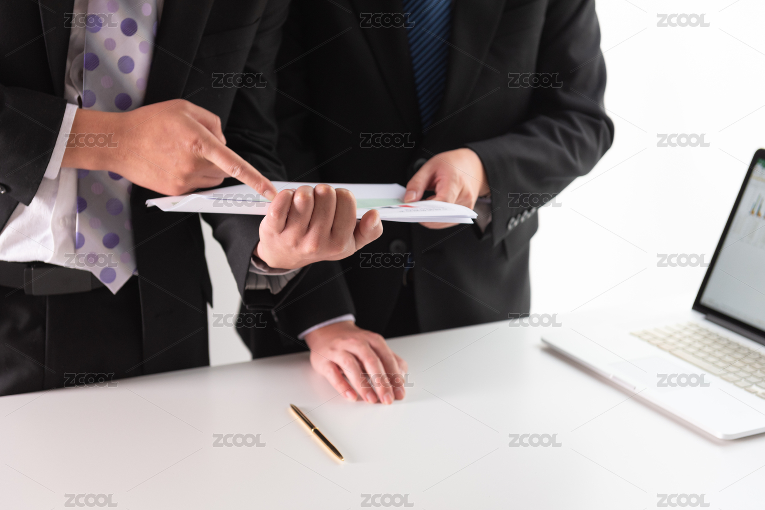 两个亚洲女商人在办公室表格的图discussng。上的侧视图。合作伙伴讨论概念。